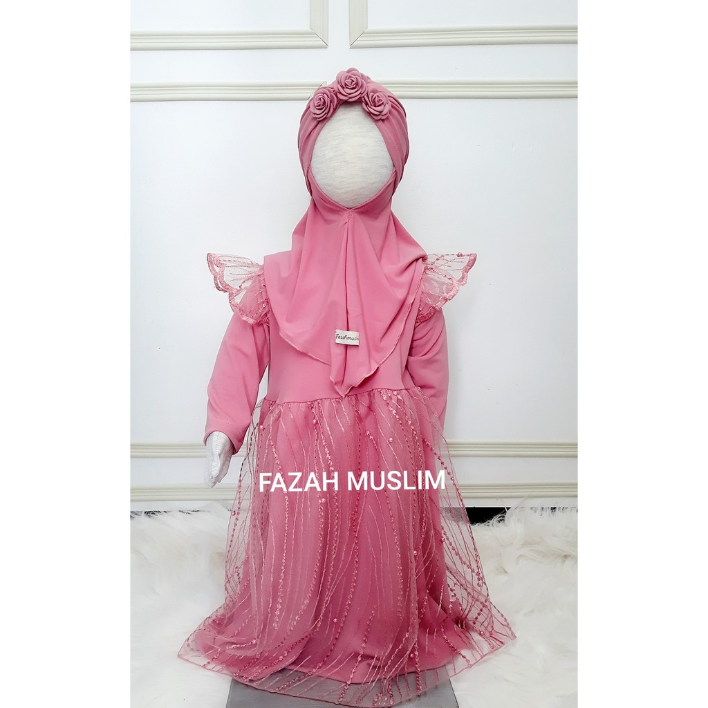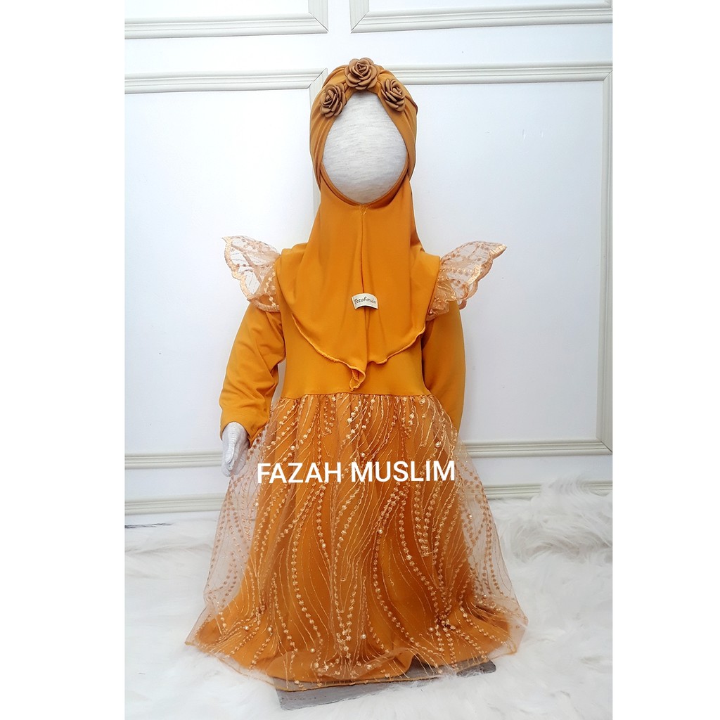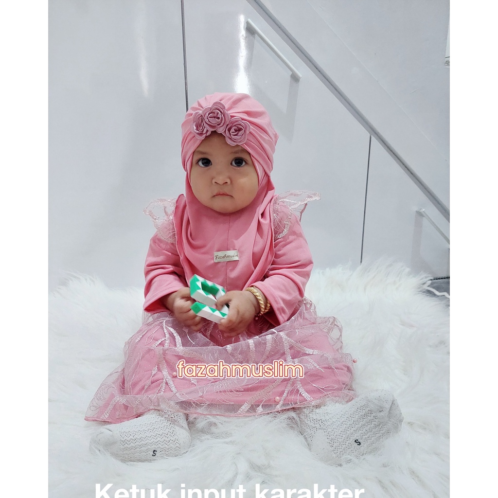 Gamis bayi, baju muslim pesta brukat tille baby, pakaian aqiqah baby