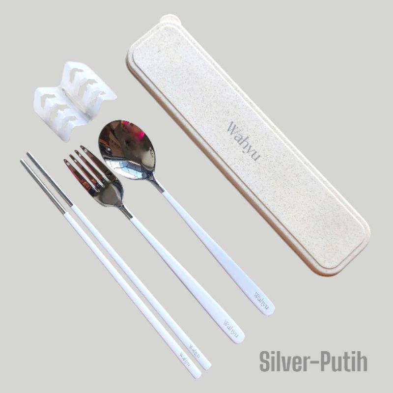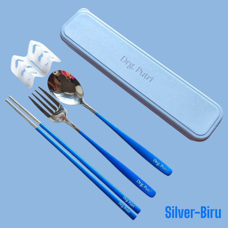 (Bisa Custom Nama) Sujeo Matte - Set Alat Makan Korea Matte Silver - Sendok Korea Matte dengan Box - Set Sendok Korea