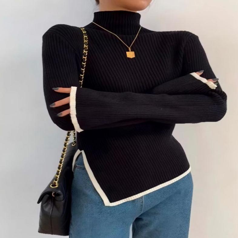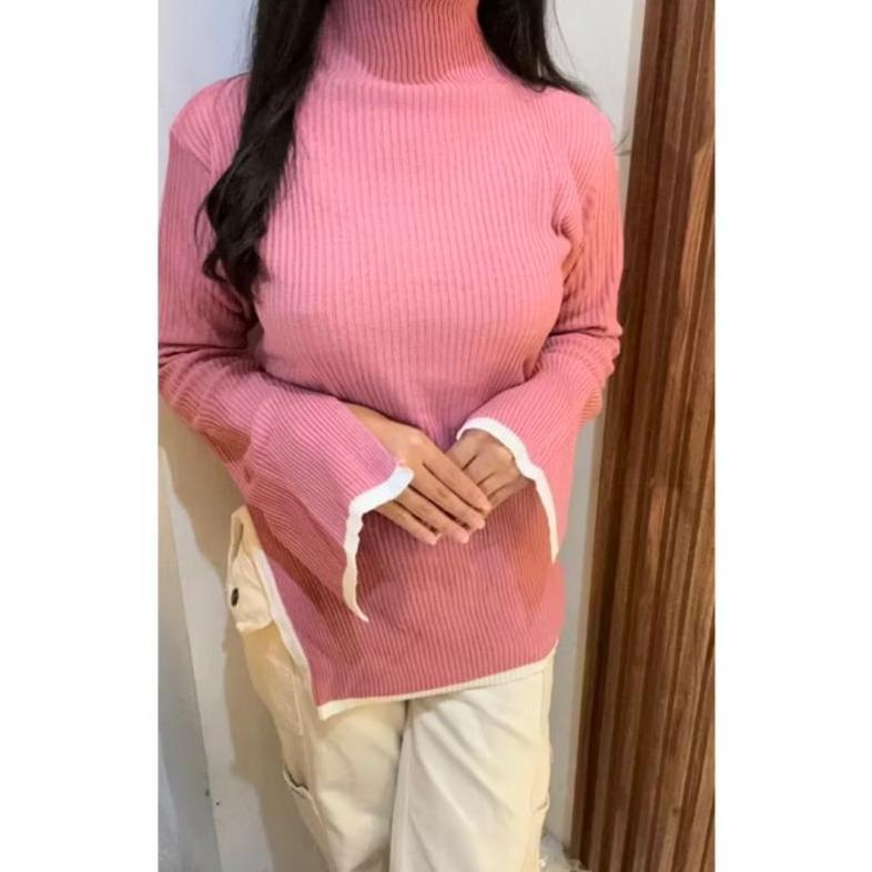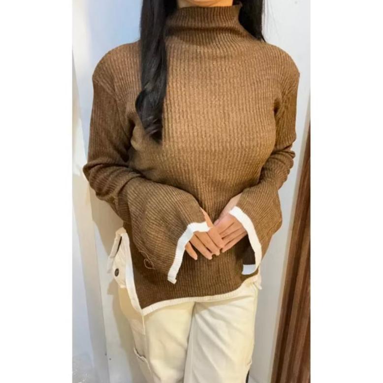 Silvia Atasan Knit Rajut Wanita Turtle Neck Kerah Tinggi Top Blouse Inner Baju Atasan Sweater Knit Rajut Lengan Panjang Manset Oversize Atasan Baju Kaos Rajut Wanita Style Korean