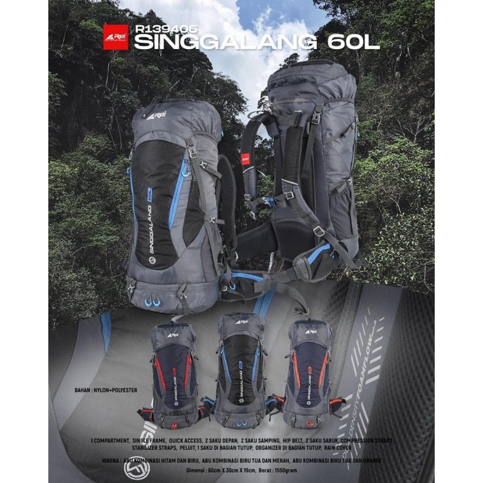 Tas Carrier Gunung Rei Arei Singgalang 60L + Rain Cover