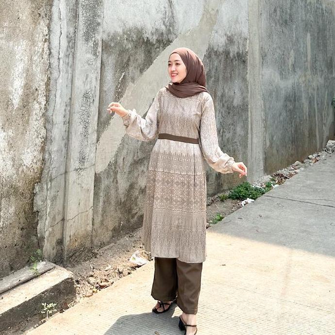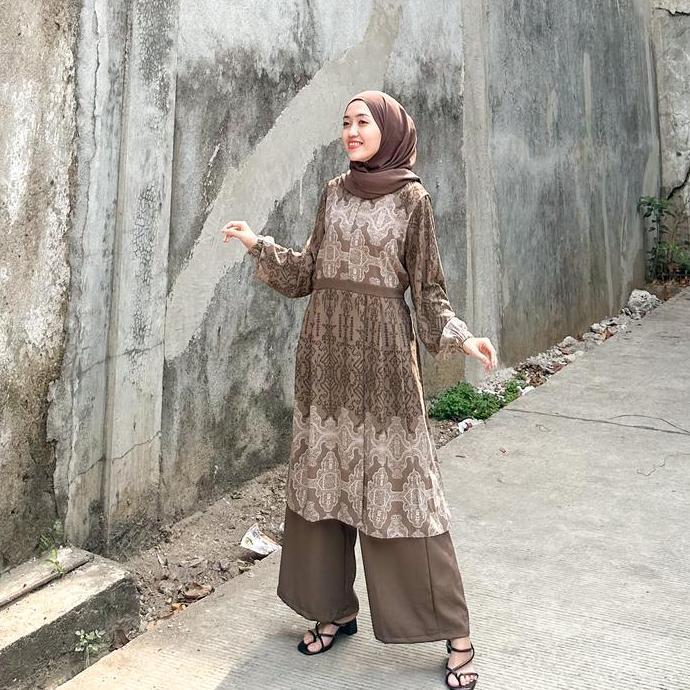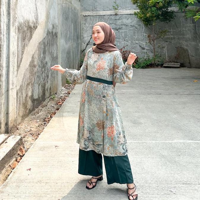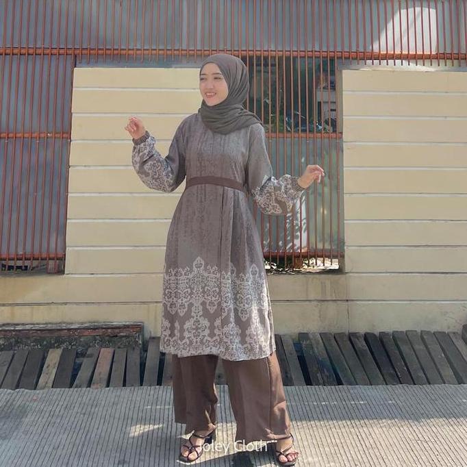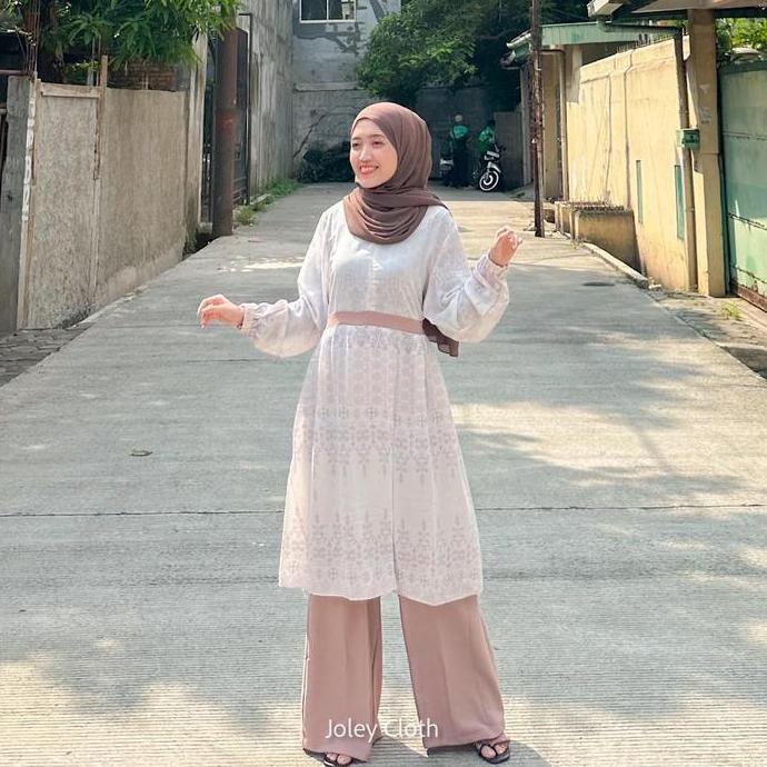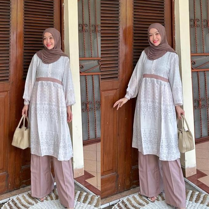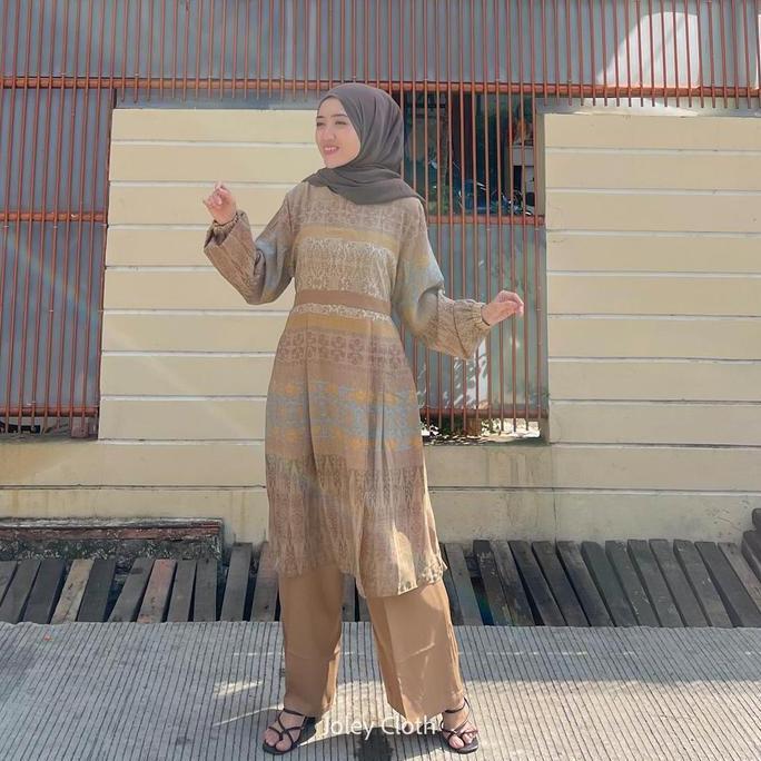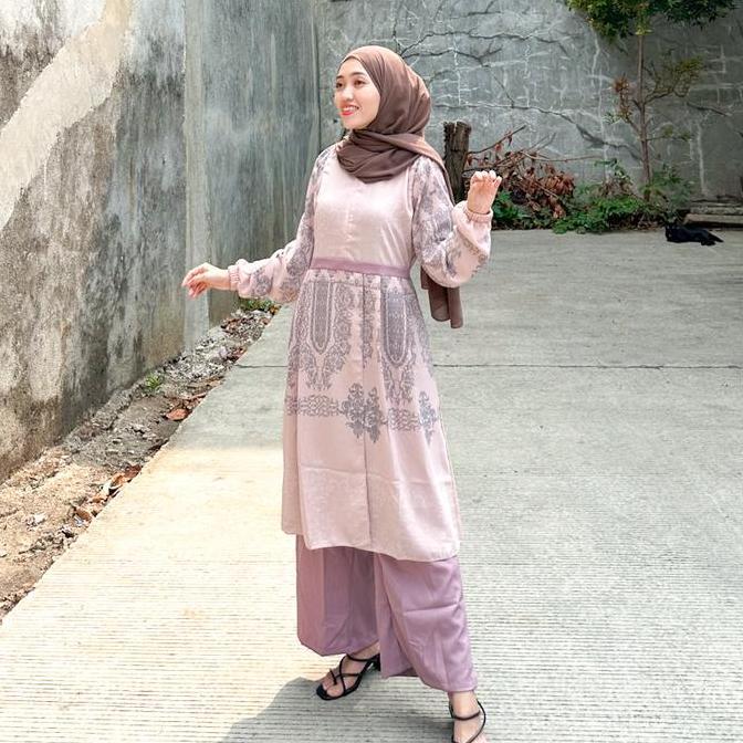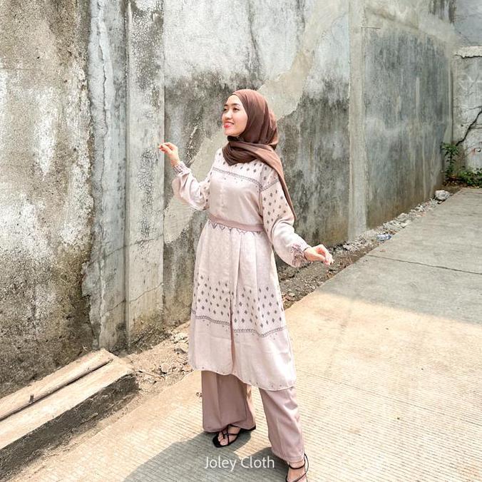 Joley Cloth - Andini Oneset Baju Pesta Katun Busui SetCel Kondangan Mewah Muslim Wanita Katun Setelan Lembut Kulot Celana Panjang Wudhu Atasan Tunik