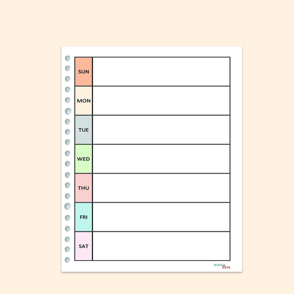 Hiasandkata Weekly Planner Aesthetic Agenda Mingguan Loose Leaf Binder A5 20 Holes