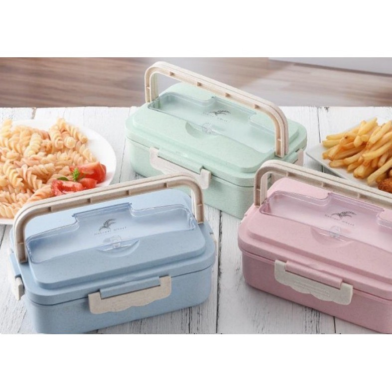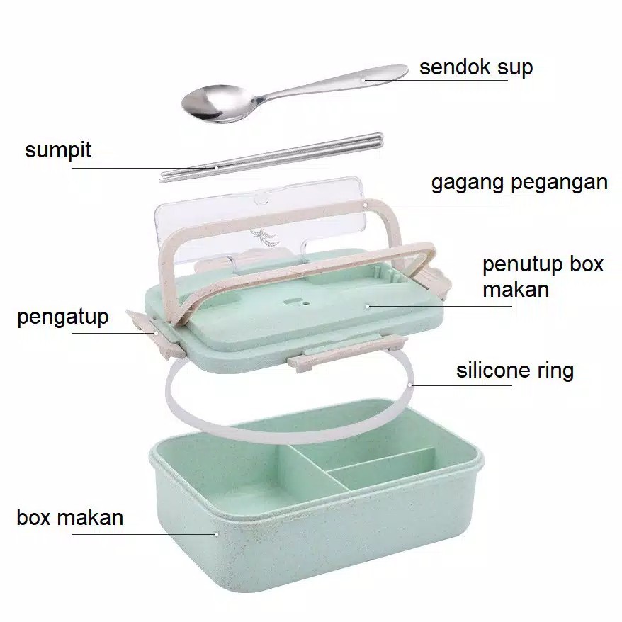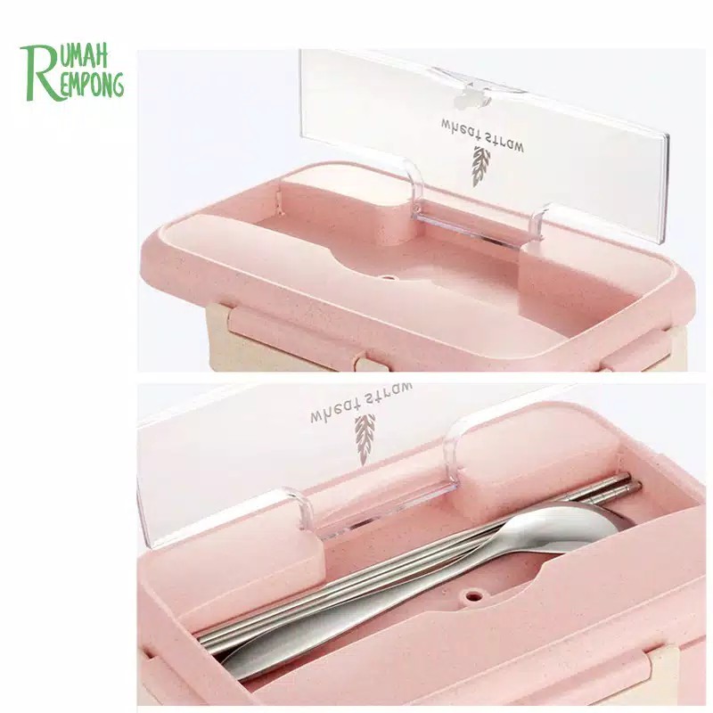 KJ!! TEMPAT MAKAN LUNCH BOX KOTAK MAKAN OMPRENG POLOS SENDOK SET BPA FREE BAHAN GANDUM/JERAMI 00424