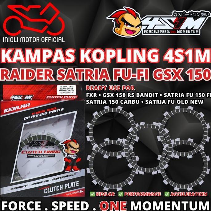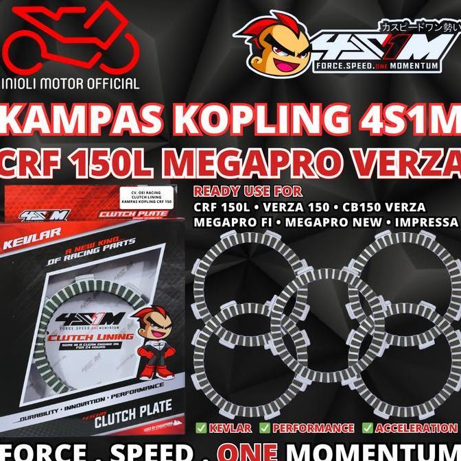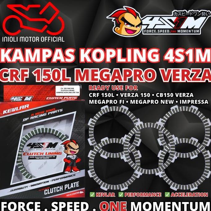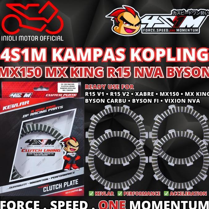4S1M KAMPAS KOPLING 4S1M RACING SONIC 150 MX KING SATRIA 150 FU FI JUPITER MX 150 R15 V1 R15 V2 XABRE NVA NEW CBR CB150 SUPRA GTR CRF 150 VERZA MEGAPRO NINJA 2T 2 TAK 150R 150SS 150RR KR150 150KRR BYSON K84 K56 K45 K15 KAMPAS KOPLING RACING KEVLAR 4S1M