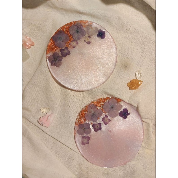 Round coaster 18 cm Resin art tatakan perhiasan souvenir gift