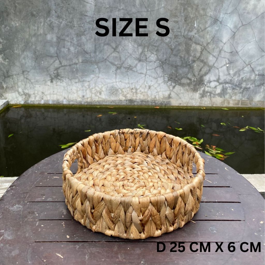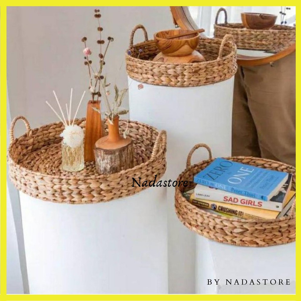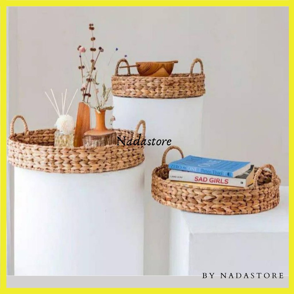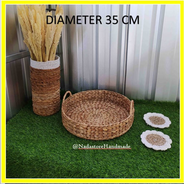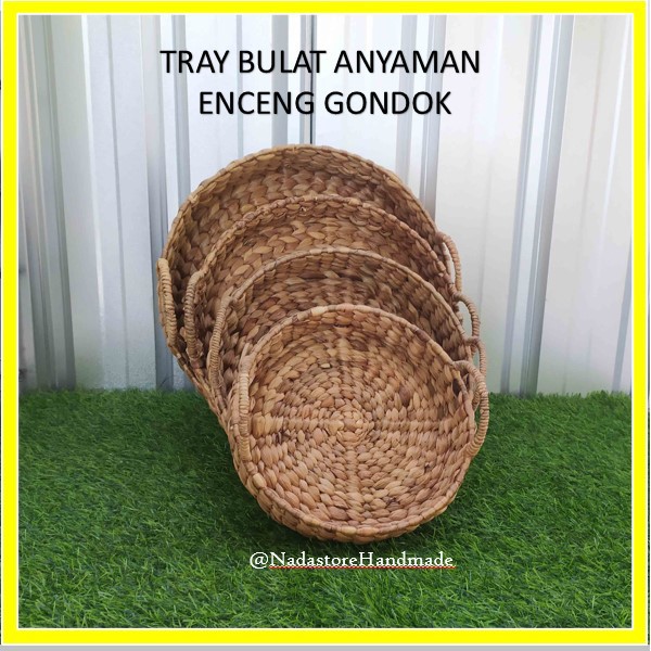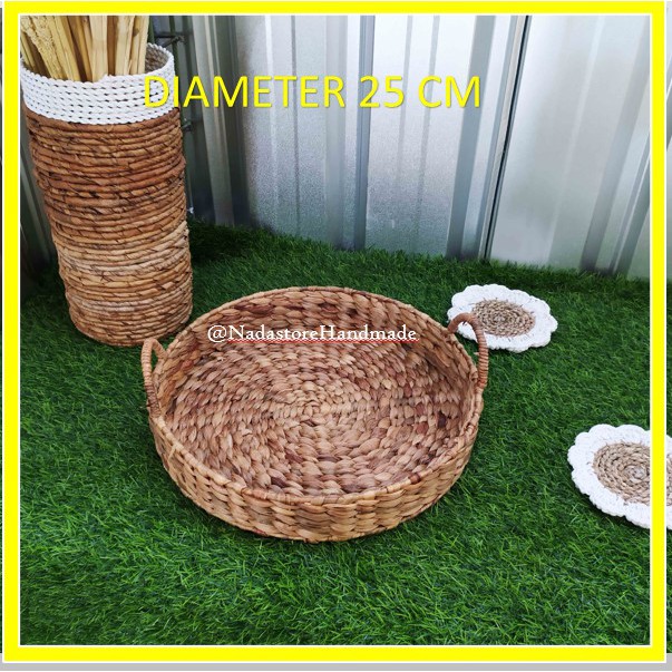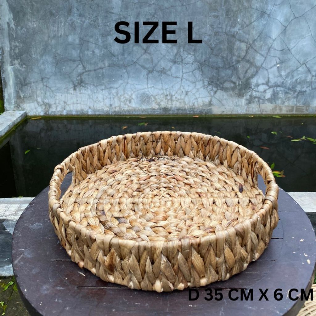 Tray / Baki / Nampan Enceng bulat anyaman enceng Gondok natural