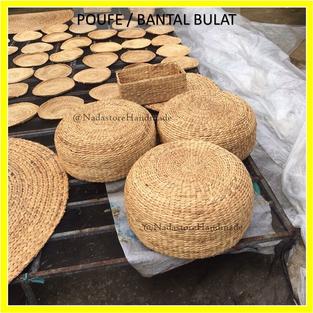 Bantal Bulat anyaman enceng gondok / Round pouffe Water Hyacinth