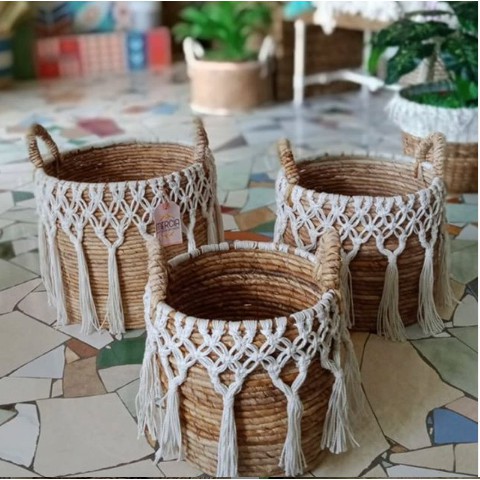 KERANJANG ANYAMAN / COVER POT ANYAMAN BANANA MACRAME RAJUT