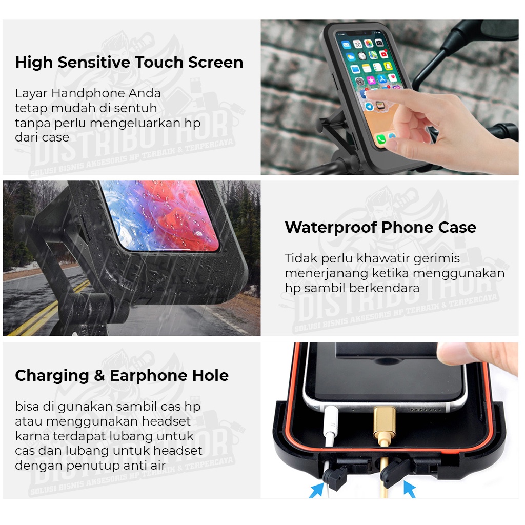 Phone Holder Motor Waterproof Tempat dudukan Hp di stang Sepeda Anti Air Stand Handphone Kereta NB18