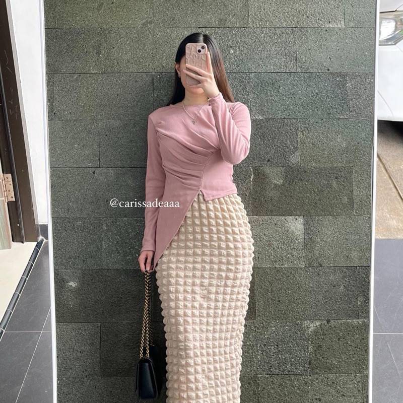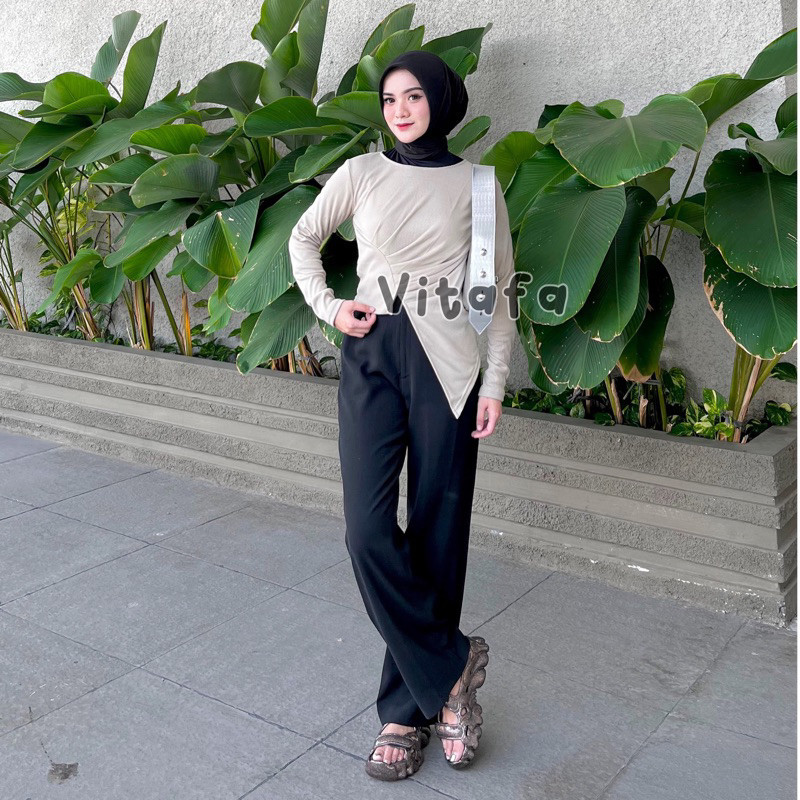 Blouse Wanita Kekinian Alma Top Knit Blouse Kerut Daily Vitafa