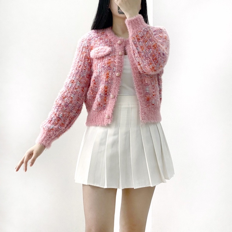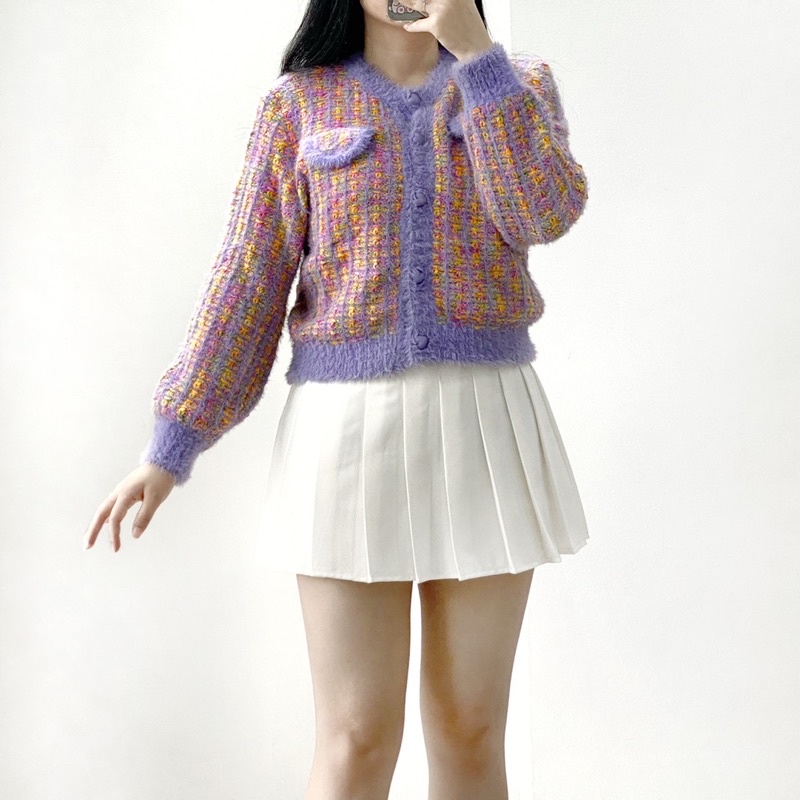 alter.cloth - YUNBIN CARDI | Atasan Lengan Panjang Wanita Kardigan Knit Rajut Import Premium Cardigan Tweed Purple Pink Fashion Murah Korea Gaya Korean Style