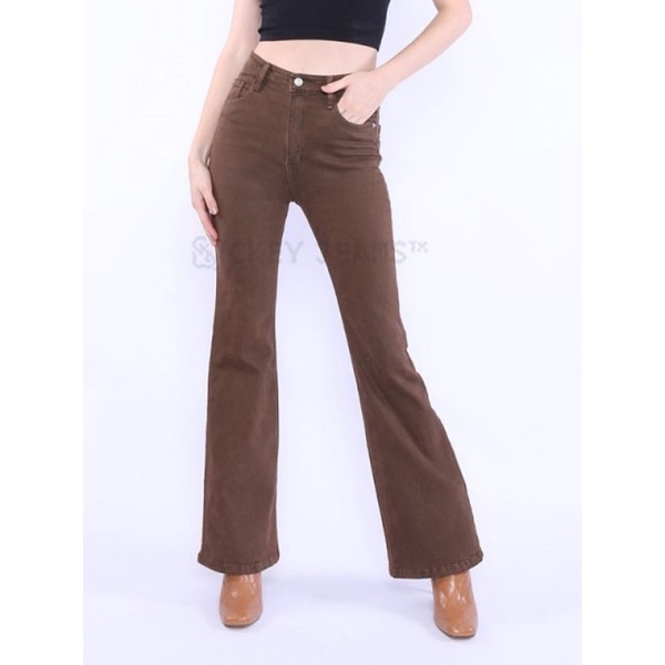 (ready uk.27-34) 7 model - Cutbray Ckey - Bigsize Jeans - Celana Cutbray Jumbo Plain Bluelight Cutbray Coklat