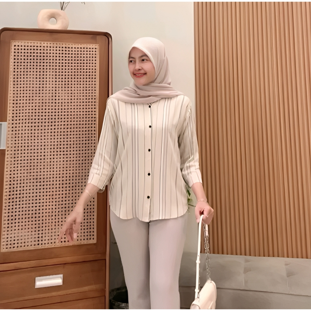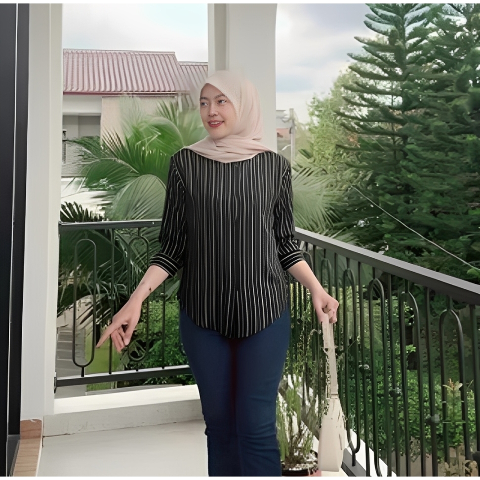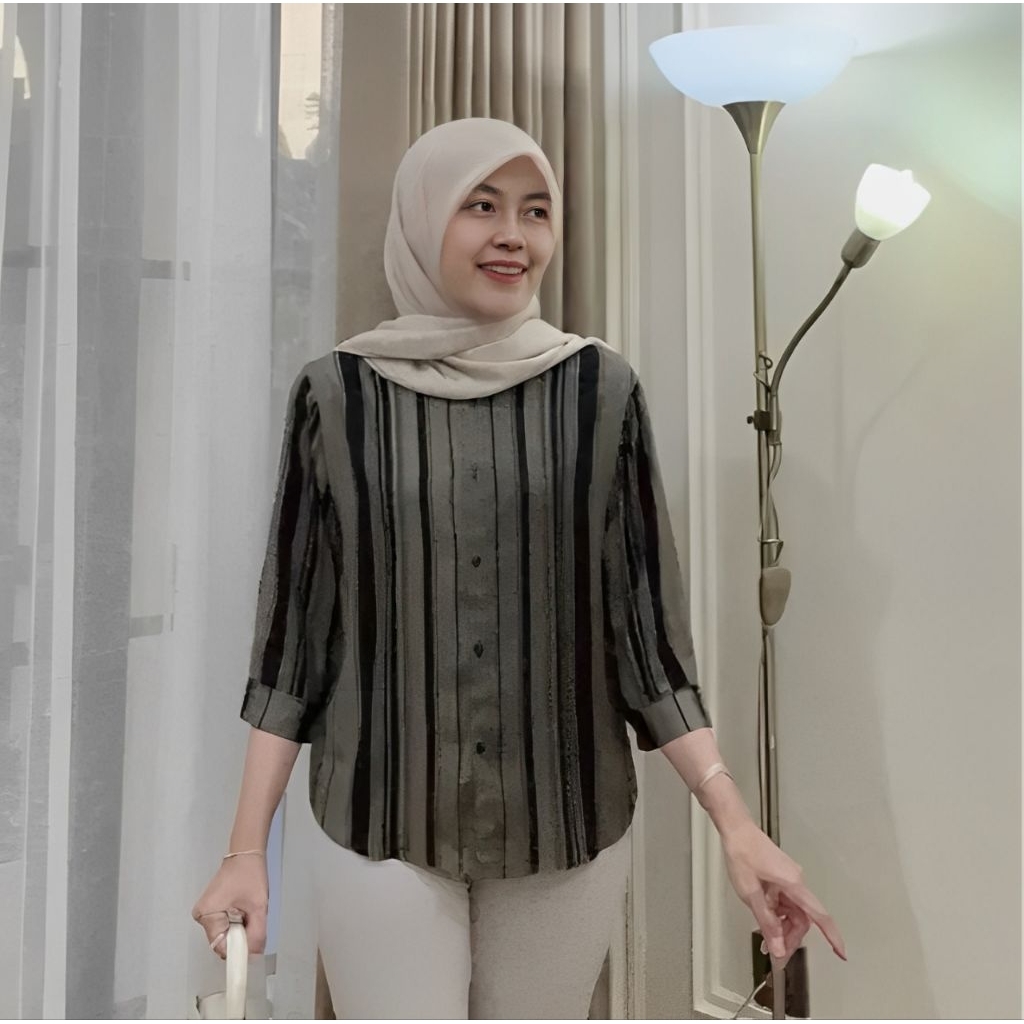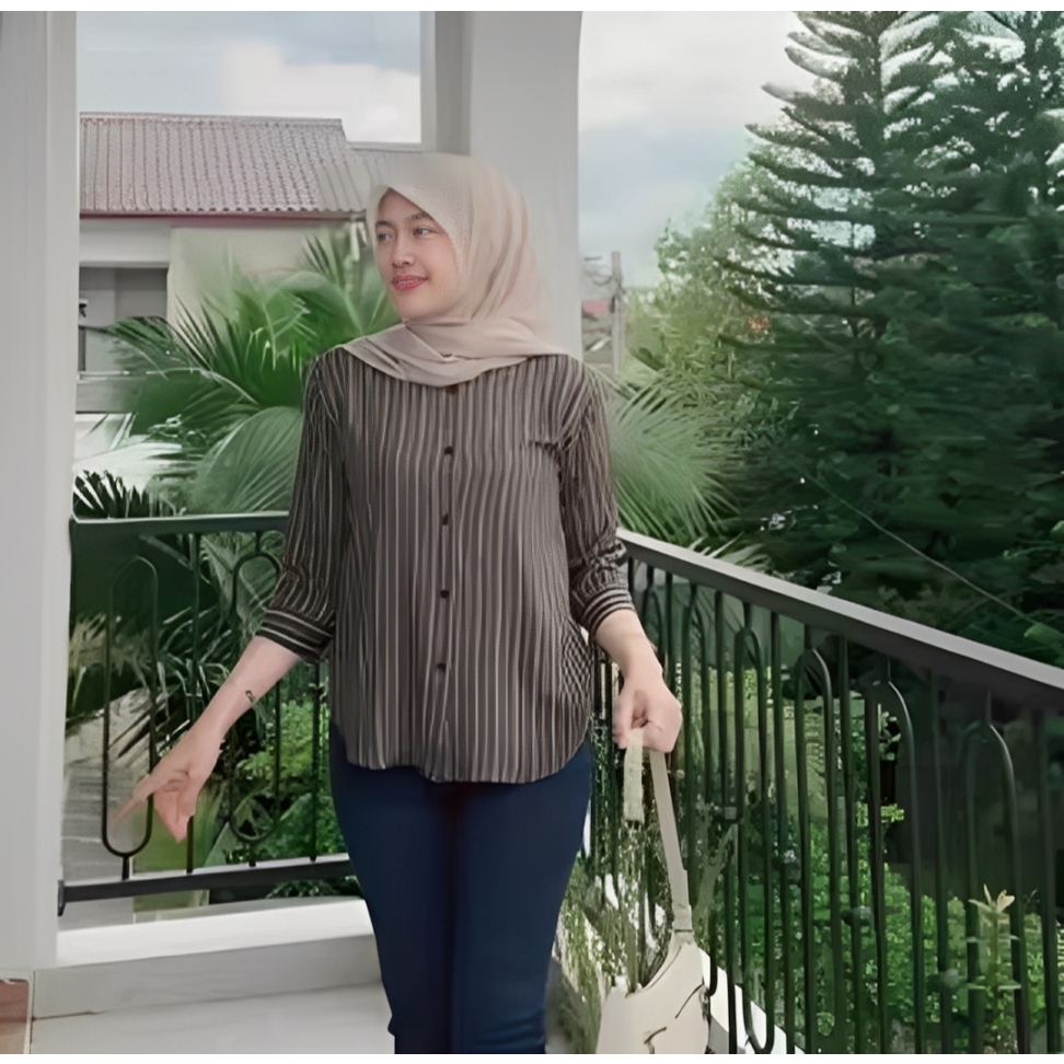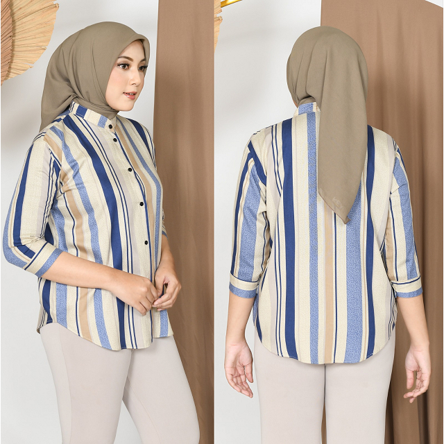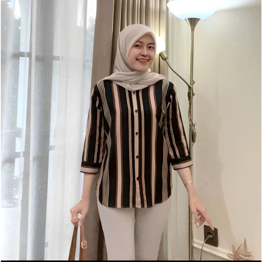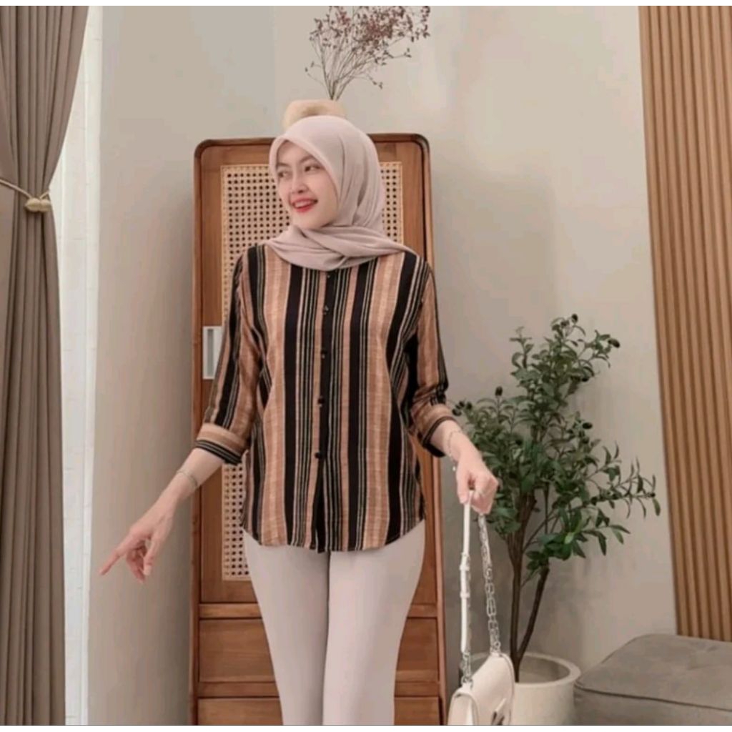 Kemeja Rayon Wanita Motif Oversize Daily Salur Rayon Jumbo Lengan 7/8 / Kualitas Baik