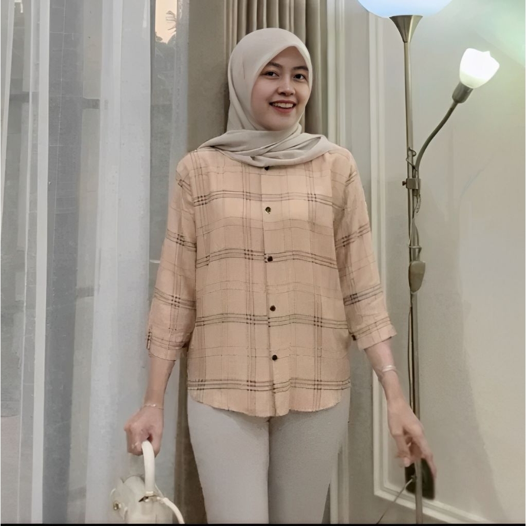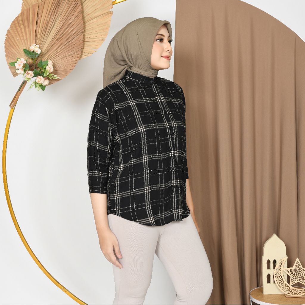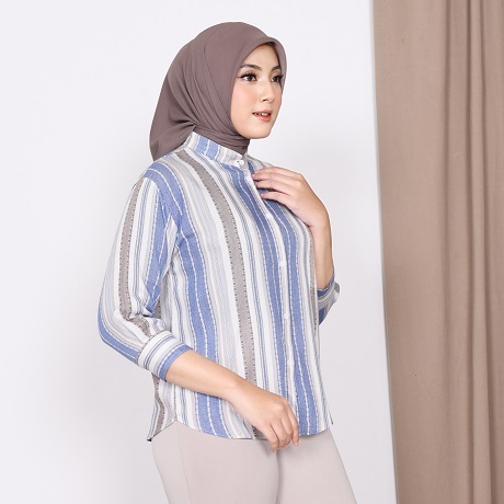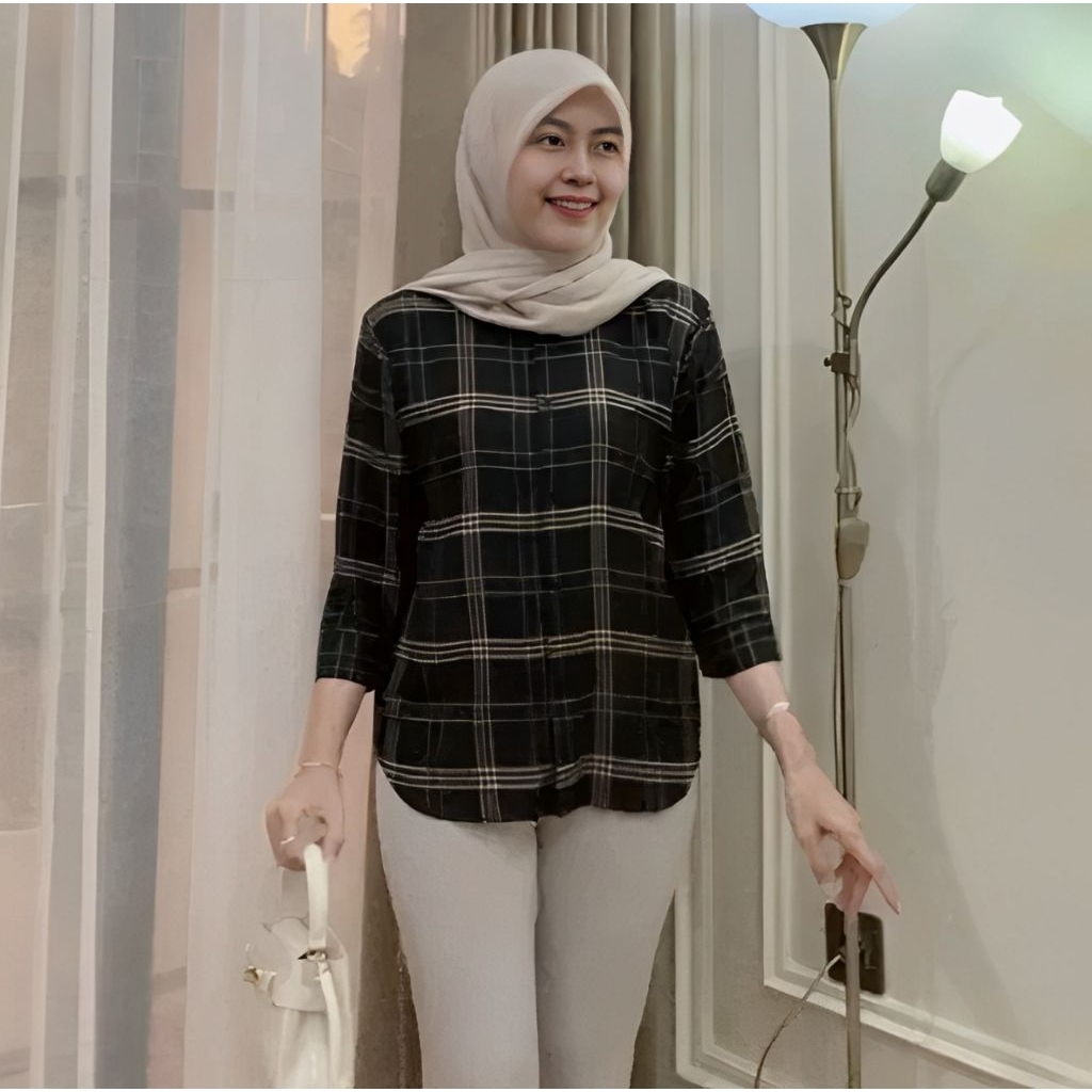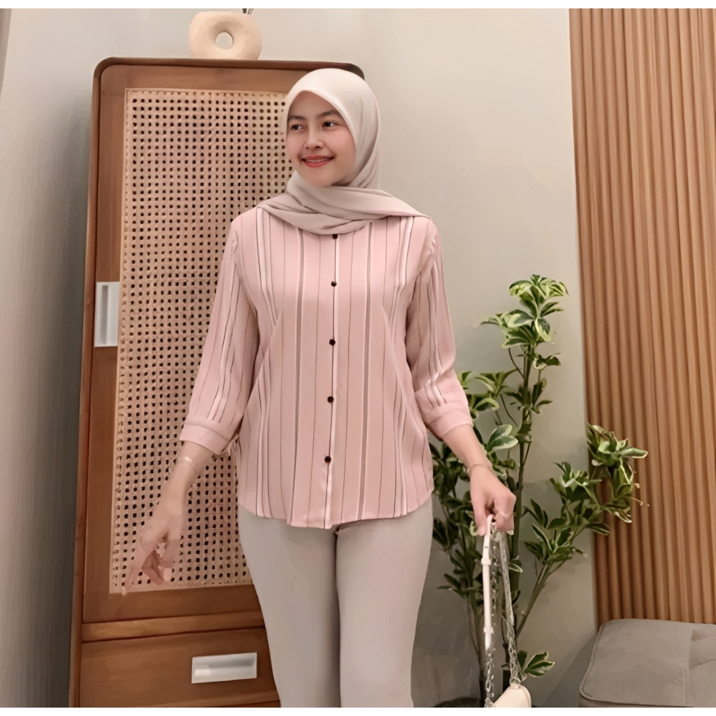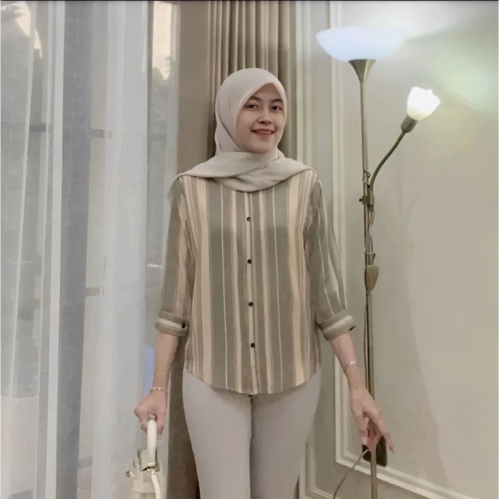 Kemeja Rayon Wanita Motif Oversize Daily Salur Rayon Jumbo Lengan 7/8 / Kualitas Baik
