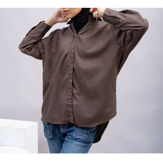 Kemeja Atasan Wanita Polos Basic Lengan Panjang Casual BAJUU BAGUS