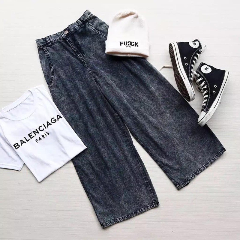 HIGH WAIST KULOT JEANS WANITA PREMIUM ASLI JEANS TEBAL BAJUU BAGUS