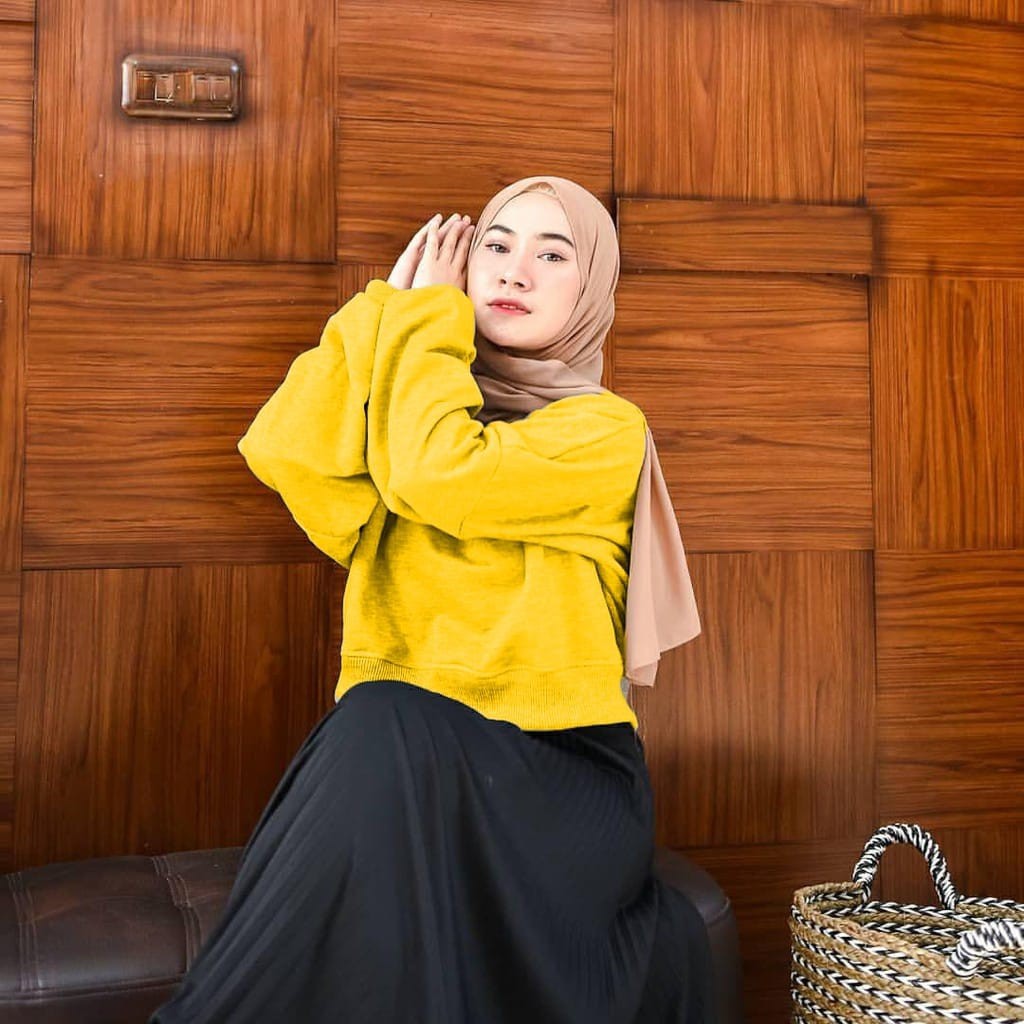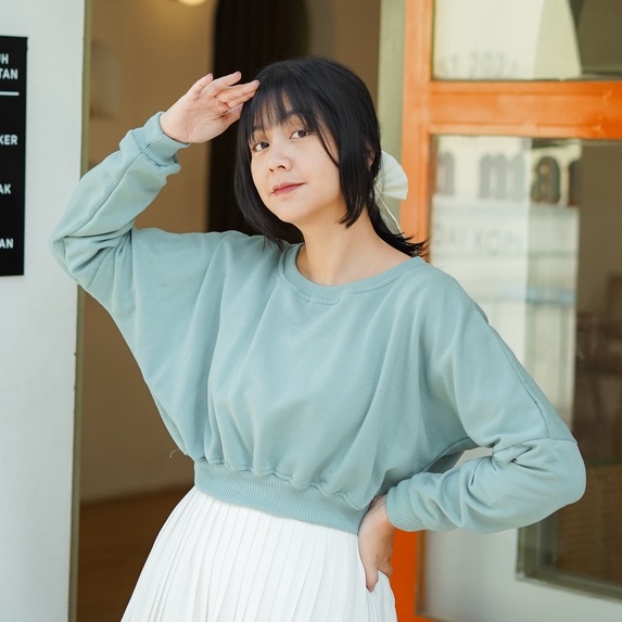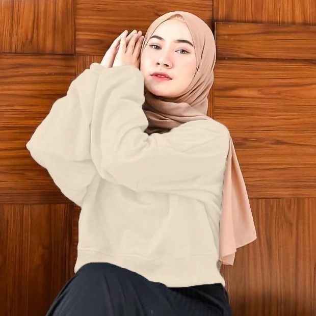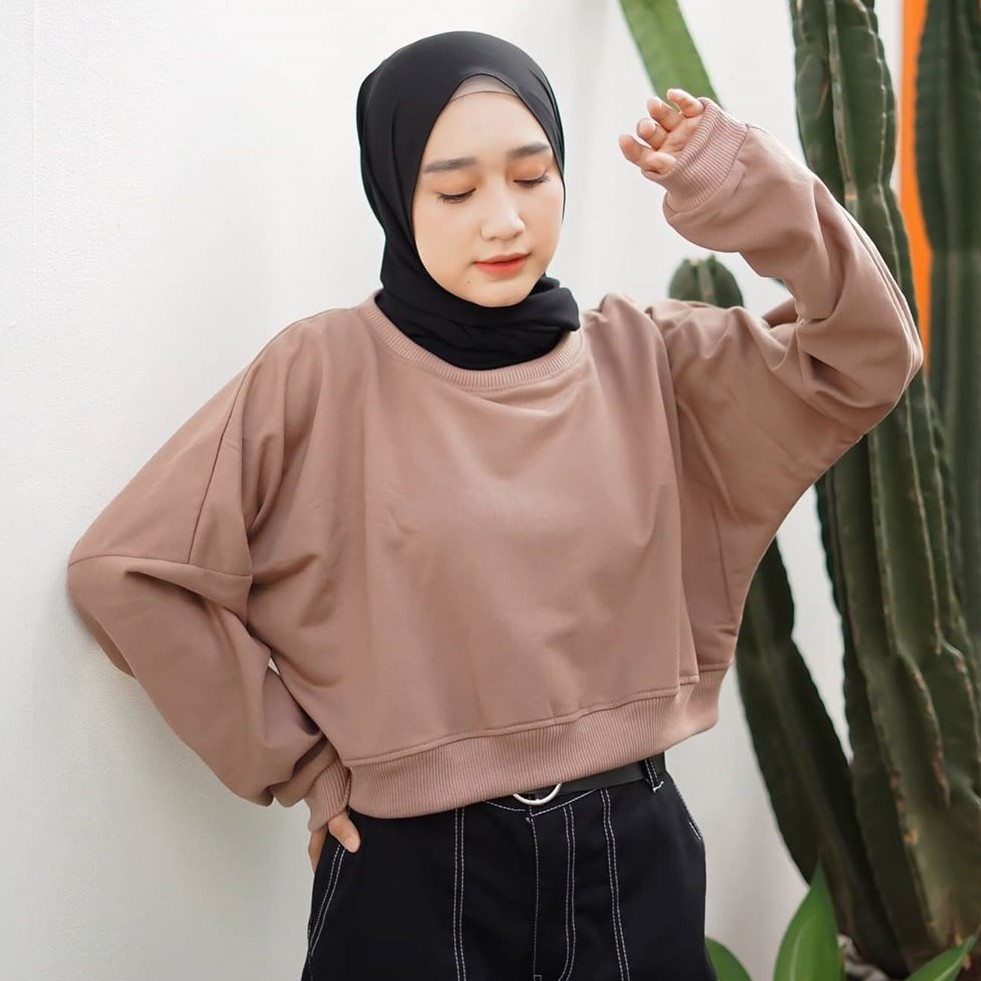 Oversize Crop Sweatshirt - Sweatshirt Wanita Kekinian