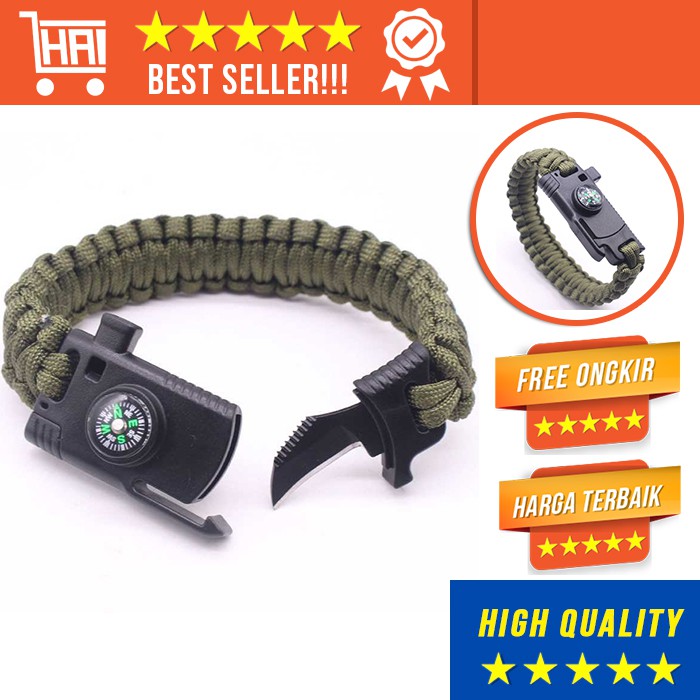 GELANG KOMPAS PISAU BRACELET OUTDOOR TACTICAL KNIFE MULTIFUNGSI ALAT SURVIVAL OUT DOOR TALI PENDAKI