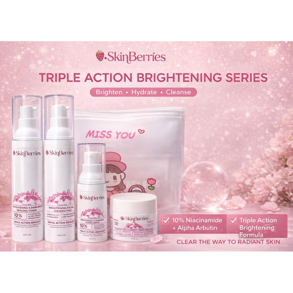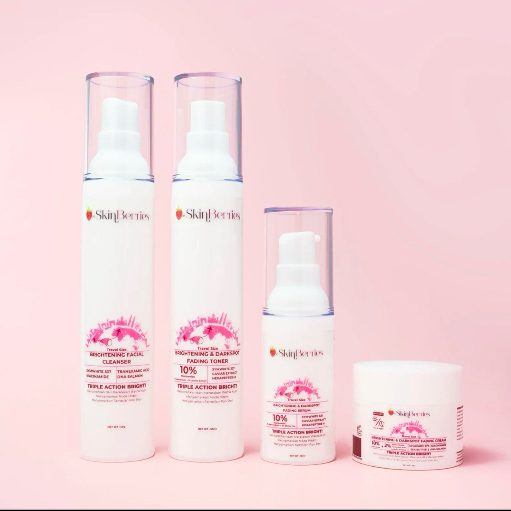 Paket Skincare Flek Hitam Skinberries FREE POUCH | Wajah Glowing Cepat & Anti Kusam