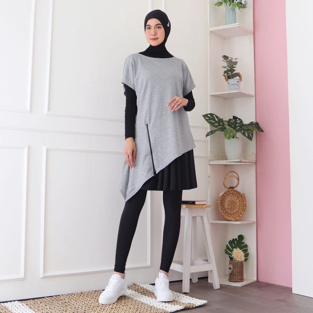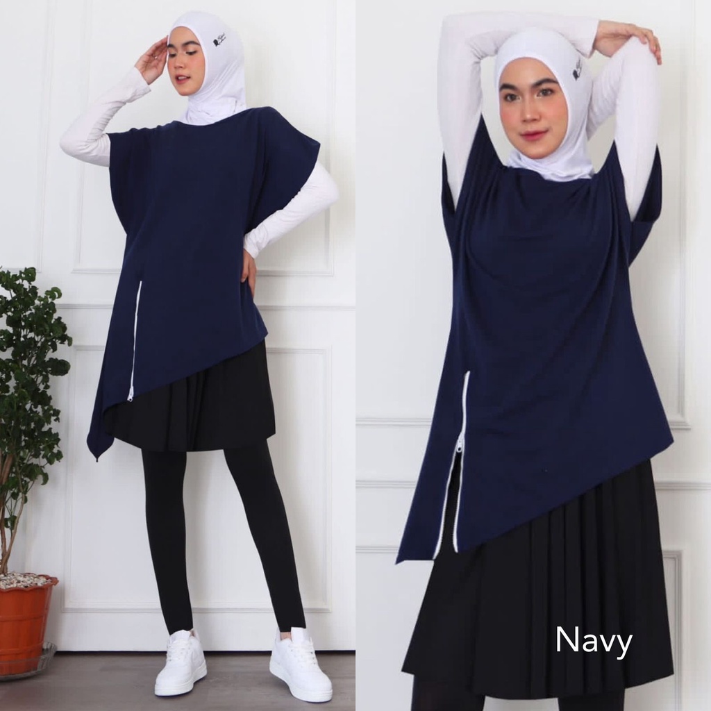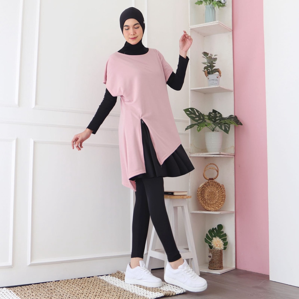 HITJAB - Baju Atasan Olahraga Wanita Sport Tunik Zipper Senam Gym Fitness Padel Training 7276
