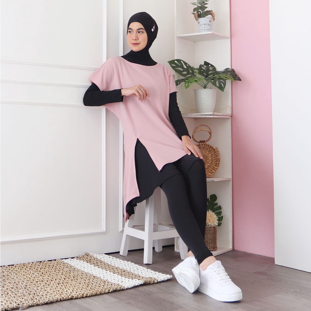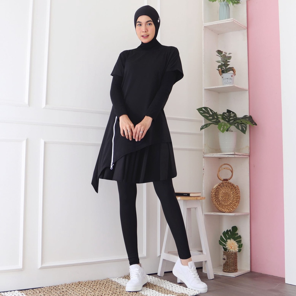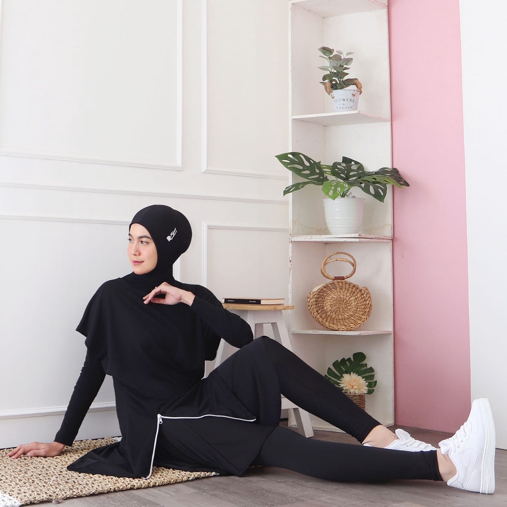HITJAB - Baju Atasan Olahraga Wanita Sport Tunik Zipper Senam Gym Fitness Padel Training 7276