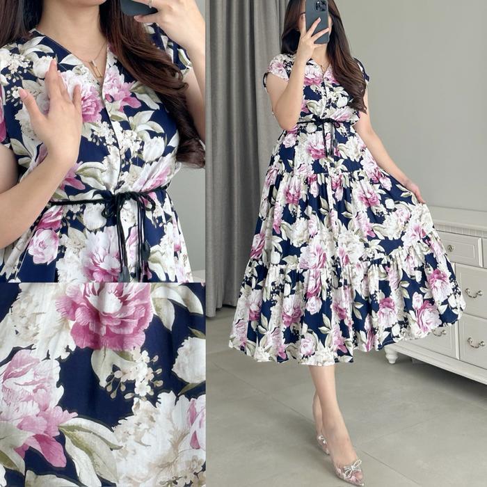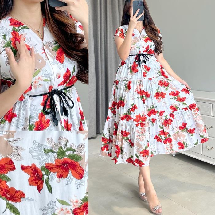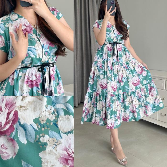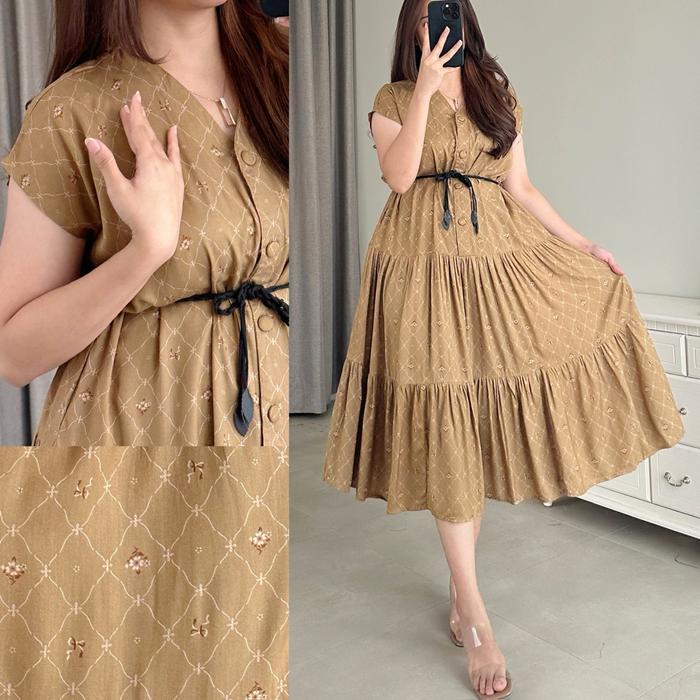 "New" Amariel Malibu Dress Panjang Daster Nyaman Kancing Bumil Busui Friendly Rayon Viscose Motif