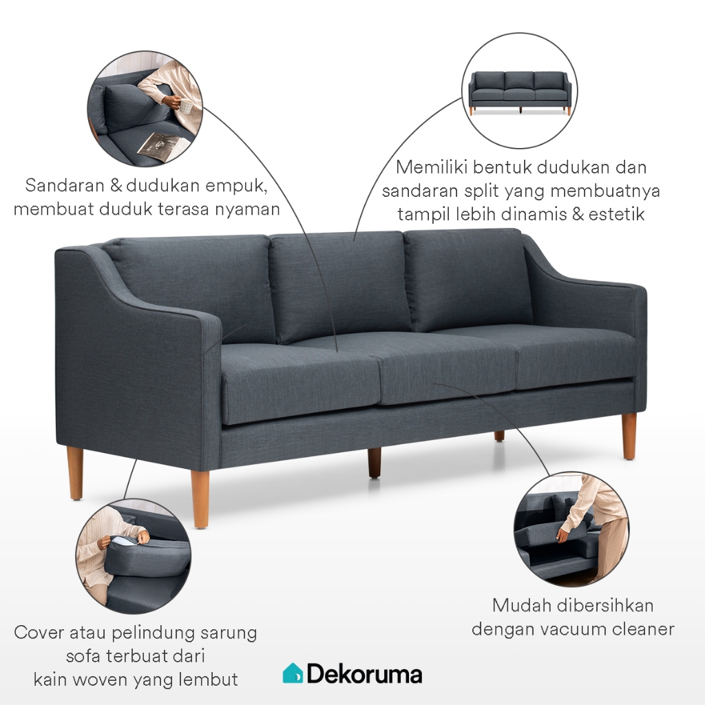 Dekoruma EITO Sofa Tamu Minimalis 3 Dudukan Kain / Sofa 3 Seater
