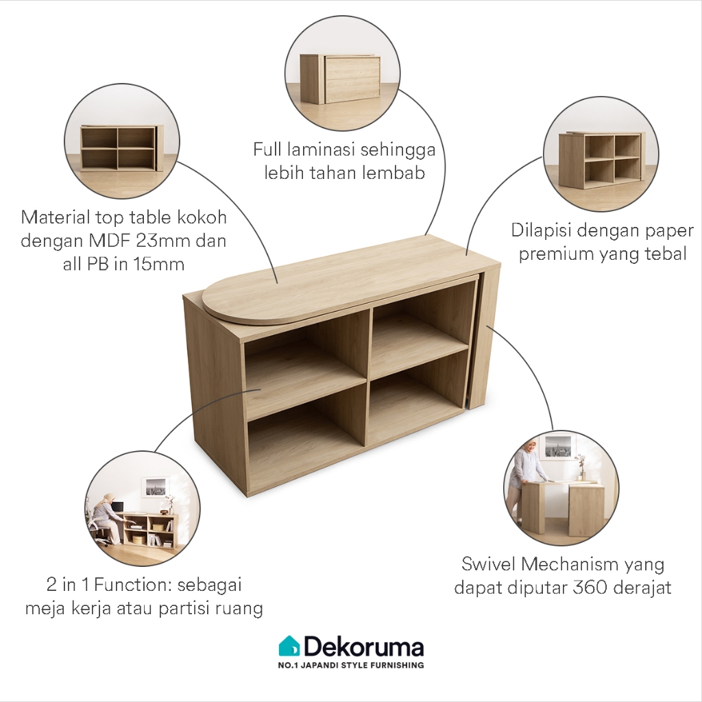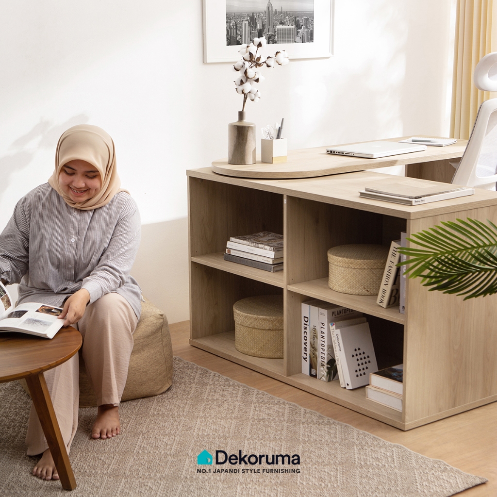 Dekoruma KARU Meja Belajar Swivel dengan Rak Penyimpanan / Meja Kerja