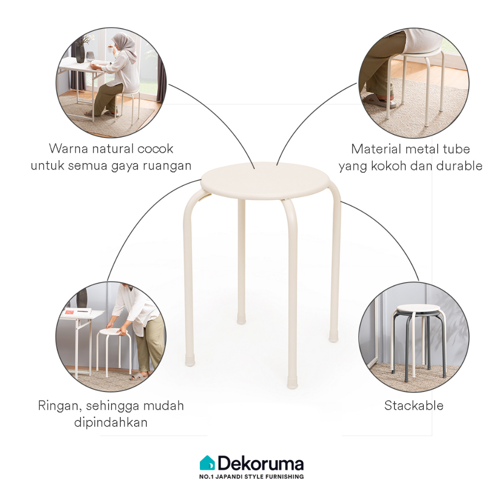 Dekoruma Asuka Bangku Kursi Bulat 30 cm - White / Kursi Serbaguna
