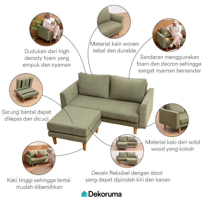 Dekoruma NITTA Sofa L Kain / Sofa Sudut / Sofa Tamu Minimalis Kain - Hijau