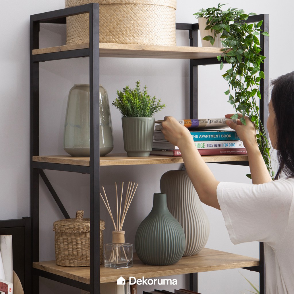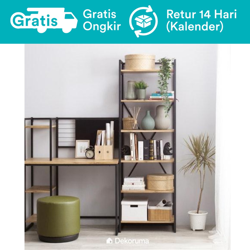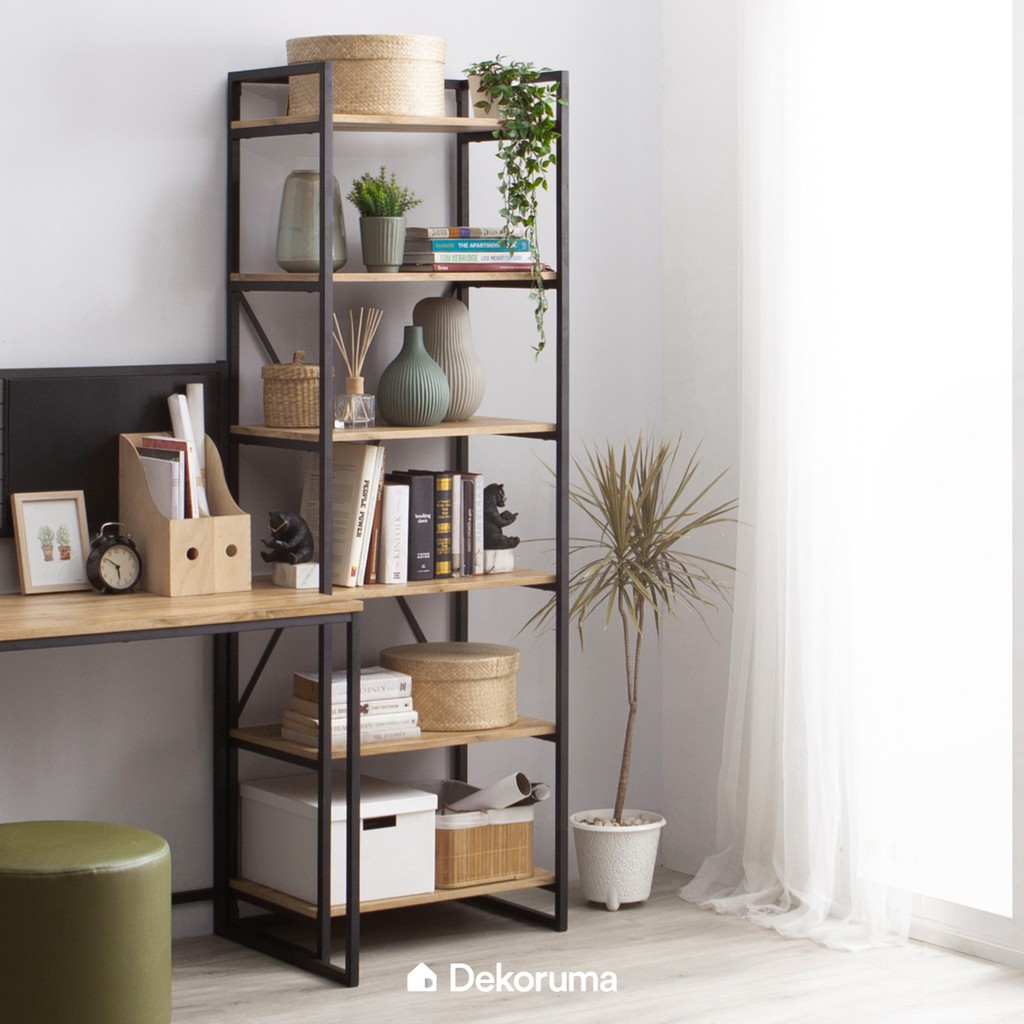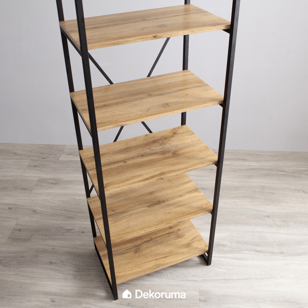 Dekoruma Kozu Rak Buku Serbaguna 5 Susun atau Lemari Pajangan Display Minimalis Kayu Olahan dan Besi