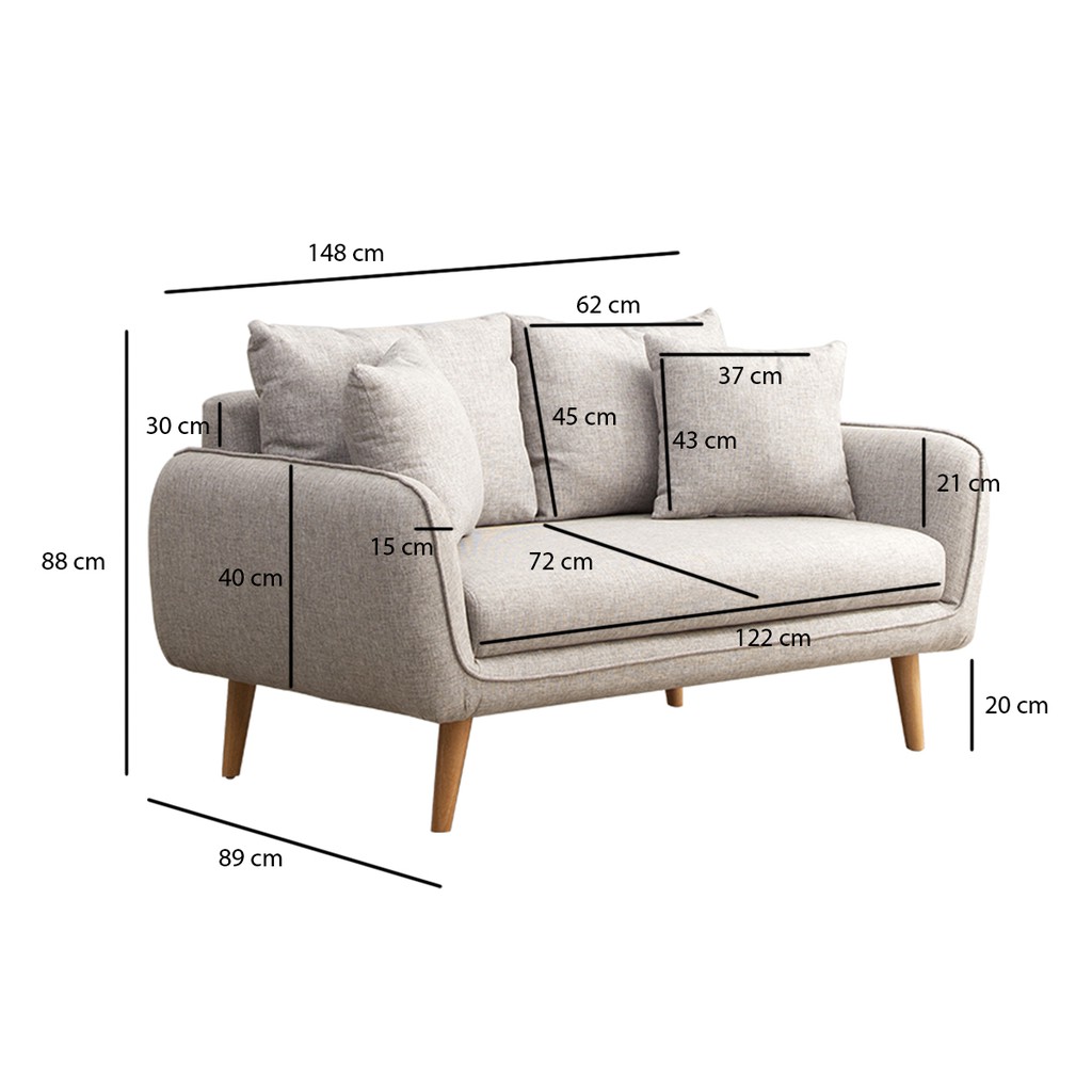 Dekoruma HIKI Sofa MInimalis 2 Seater - Sofa Ruang Tamu Scandinavian 2 Dudukan Kain - Abu-abu Muda