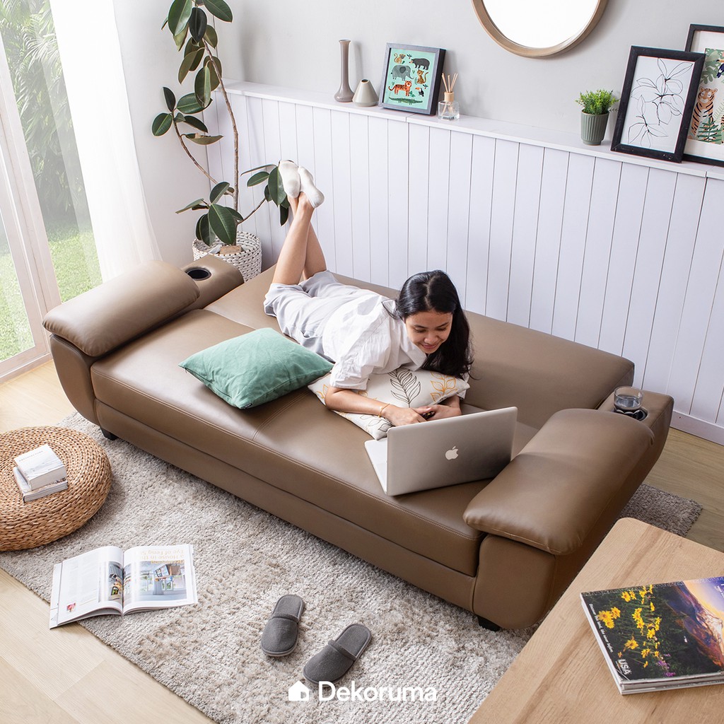 Dekoruma HATO Sofa Bed Minimalis Kulit / Sofabed Ruang Tamu