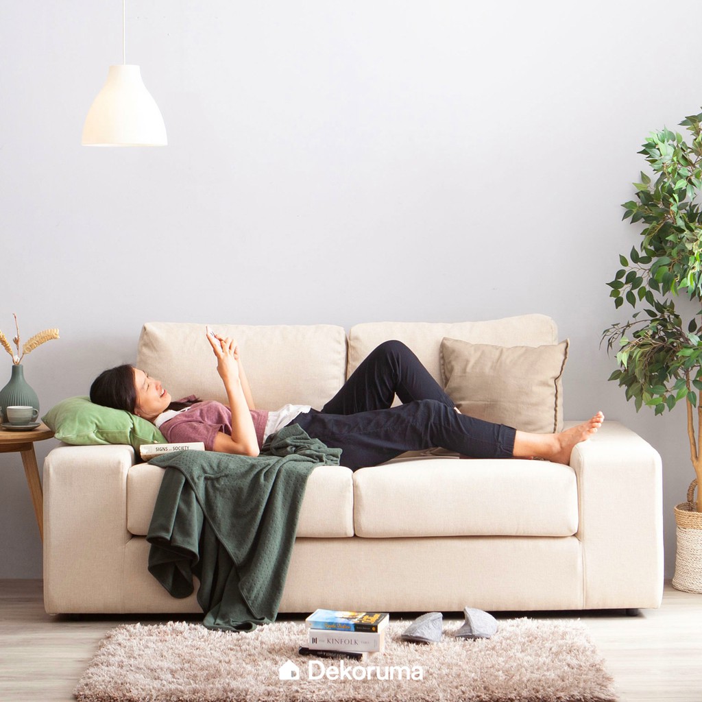 Dekoruma Michi Sofa 2 Seater Scandinavian / Kursi Sofa Ruang Tamu Minimalis Modern 2 Dudukan Kain - Krem