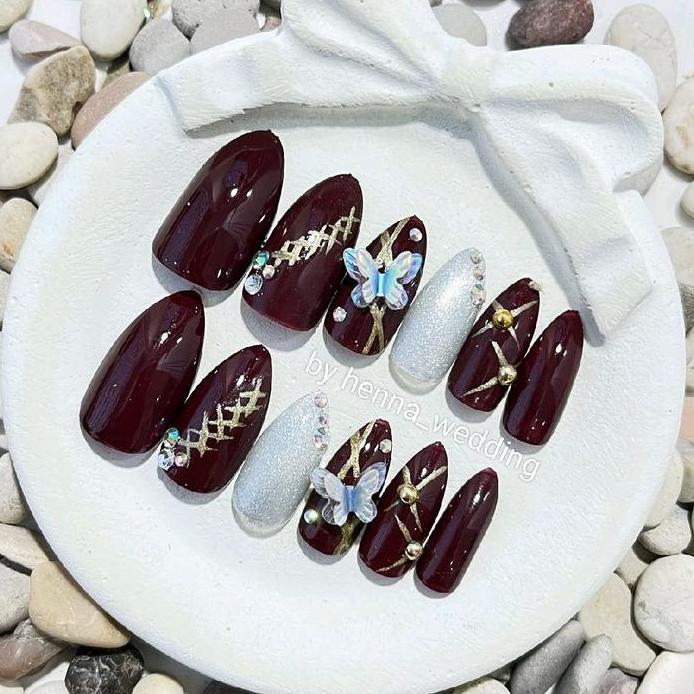 Cateye Kuku palsu handmade 3D free lem|kuku pengantin|fake nails Art Nail Polish cutbray