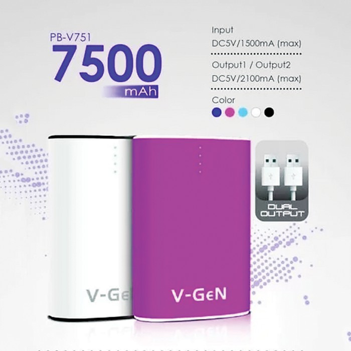 V-Gen Power Bank Rescue PB-V751 7500 MAH vgen Kapasitas 7500mAh