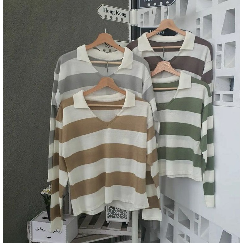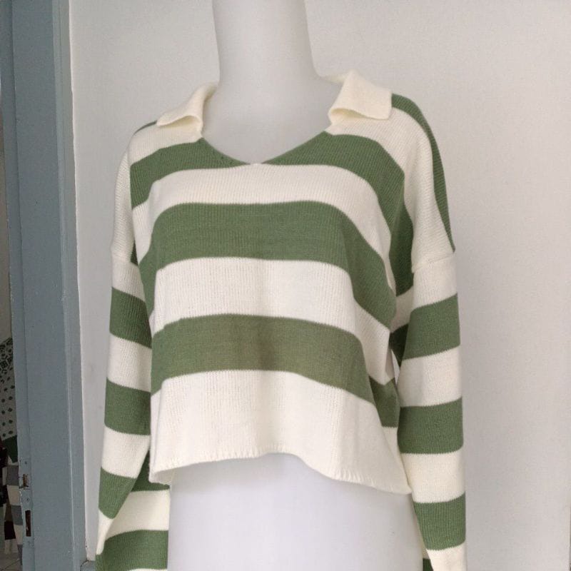 BAJU RAJUT CROPTOP BLASTER GARIS SALUR PREMIUM FUJI SWEATER/Baju rajut kekinian/baju model terbaru/baju Viral/Baju Stripe Terlaris