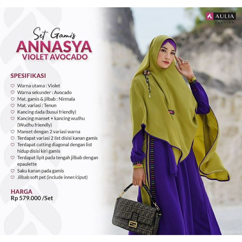 AULIA FASHION GAMIS ANNASYA VIOLET AVOCADO TERBARU LIMITED EDITION