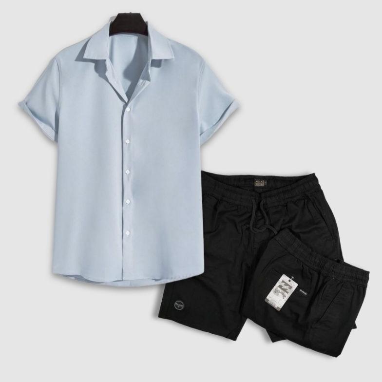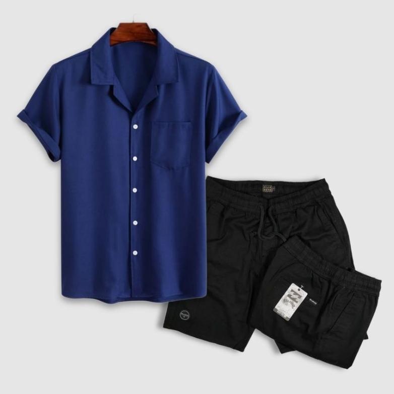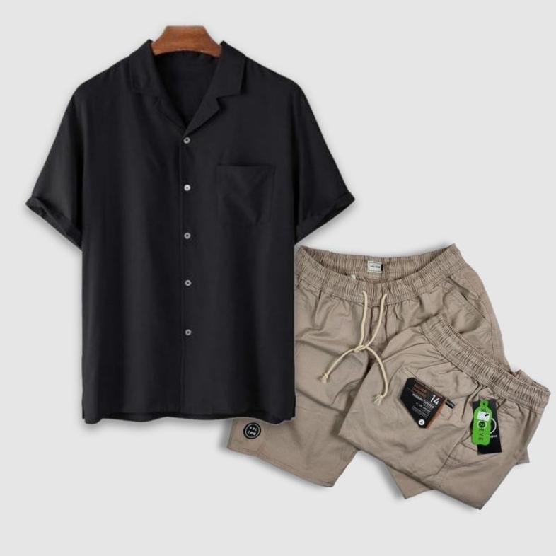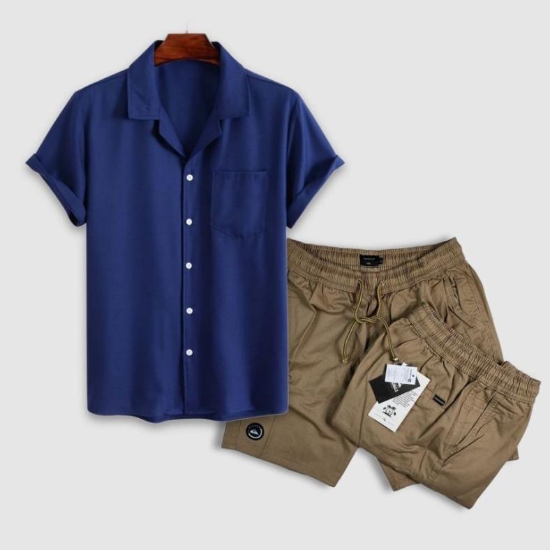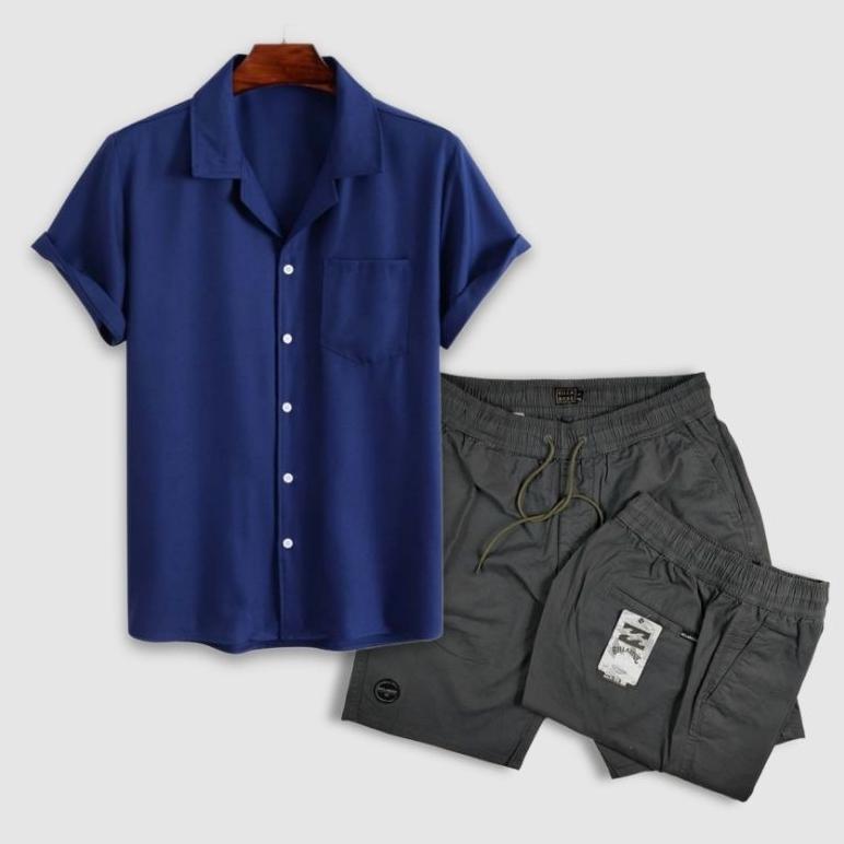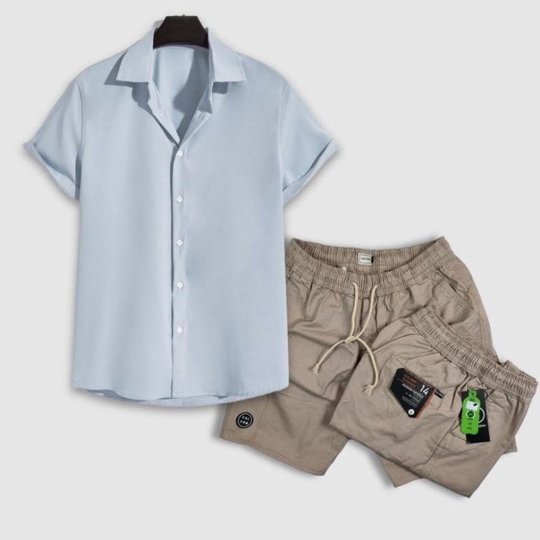 CUCI GUDANG Paket Hemat COD Setelan Pria Dewasa Terkini Kemeja Pria Polos Lengan Pendek - Celana Pendek Pria Dewasa High Quality -outfit korean style cowok keren