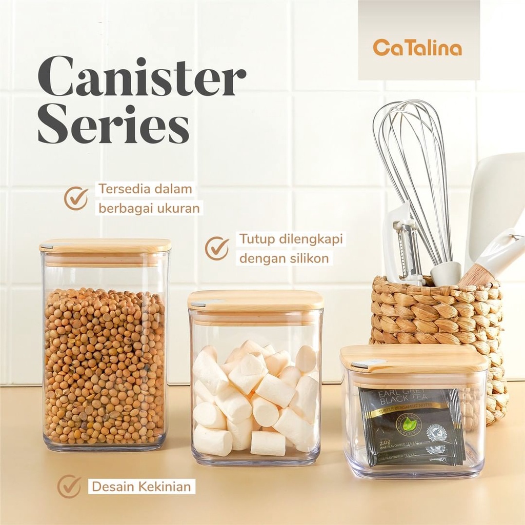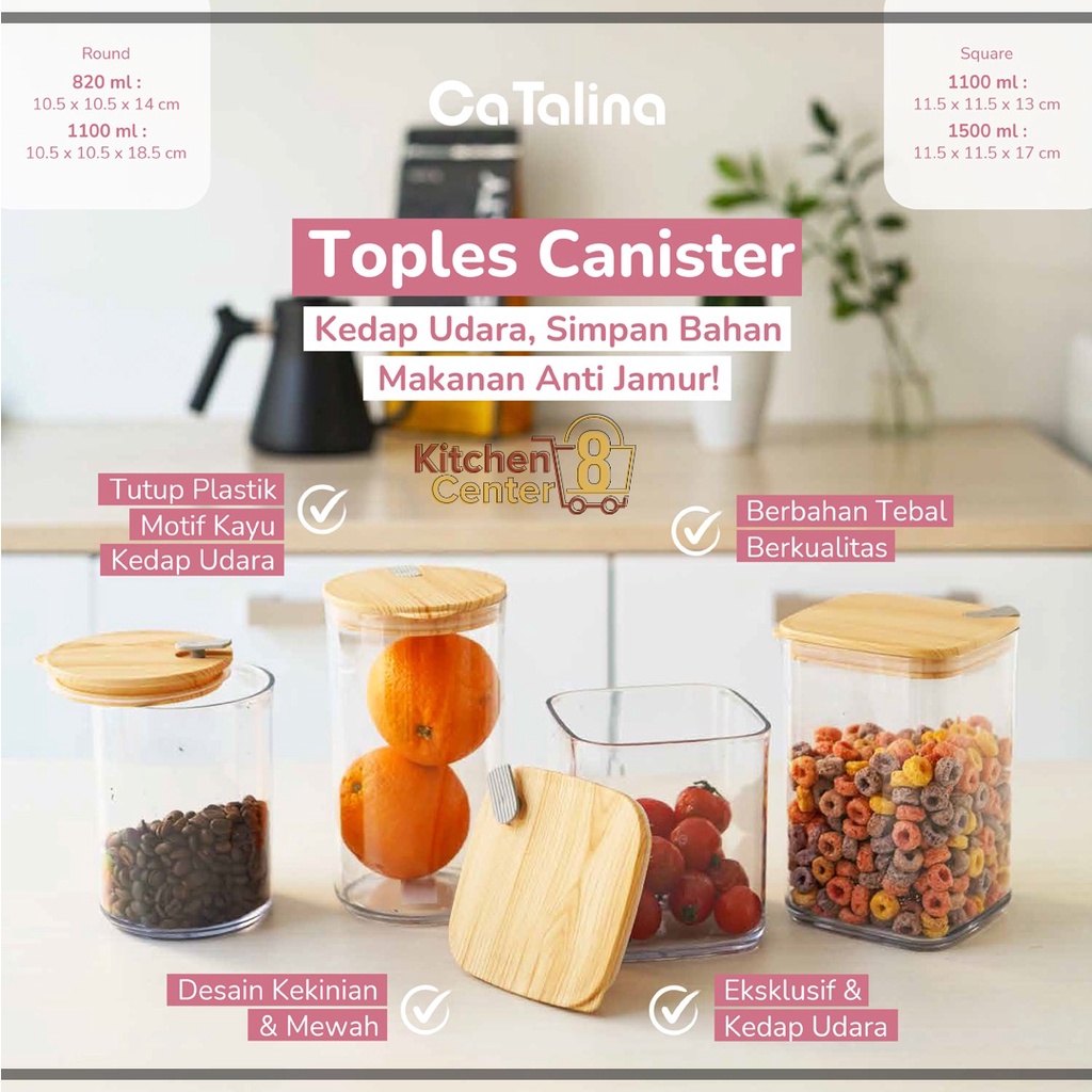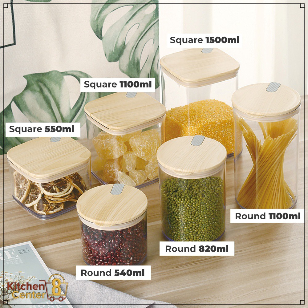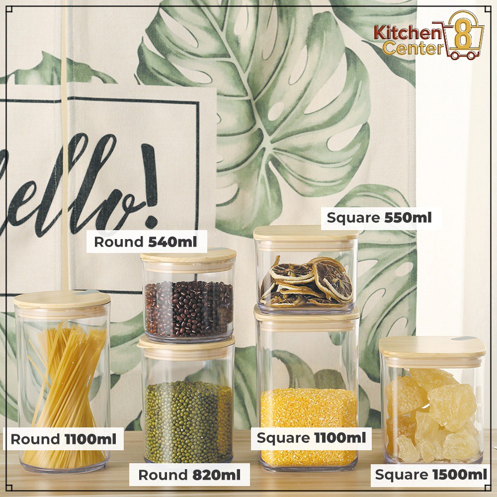 Toples Canister Aesthetic / Toples Gula / Toples Garam / Toples Susu / Toples Kopi Plastik Mika Kedap Udara Glass Bamboo Minimalis