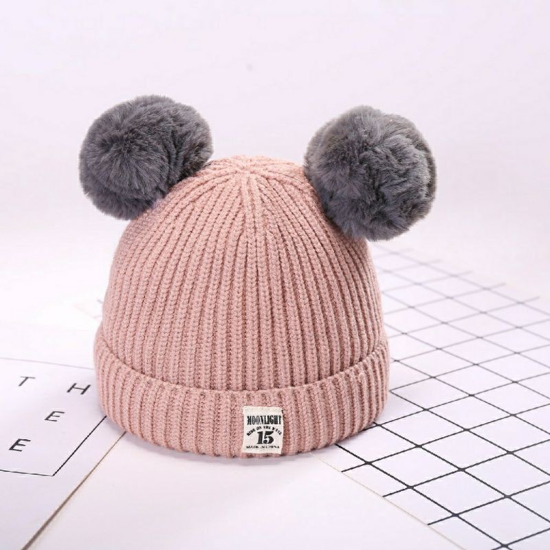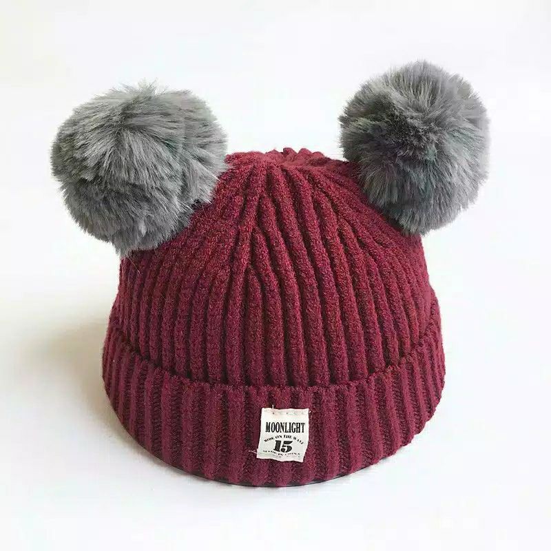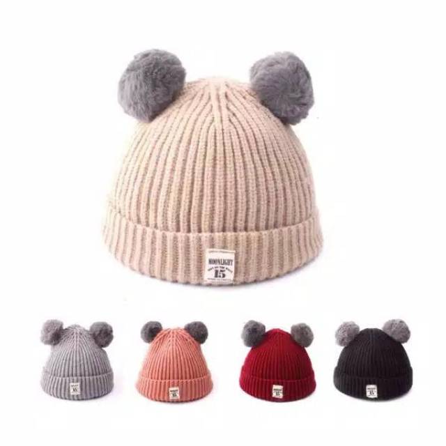 TK04 Topi Kupluk Wool Rajut Hangat Bayi / Anak Laki-laki / Perempuan Aksen Pompom Bulu