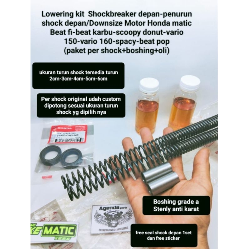 Lowering kit Shockbreaker depan-penurun shock depan/Downsize Motor Honda matic@Beat fi-beat karbu-scoopy donut-vario 150-vario 160-spacy-beat pop(paket per shock+boshing+oli)