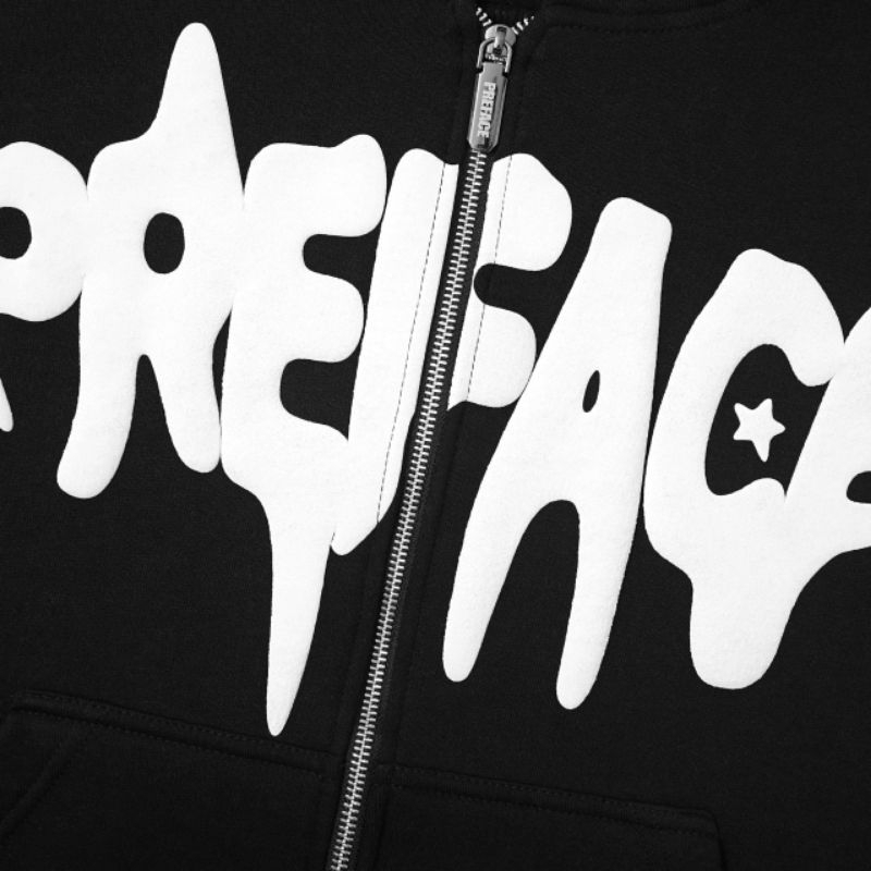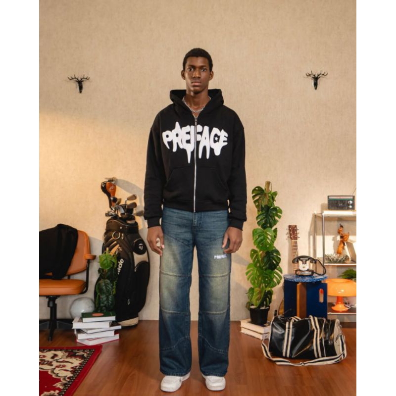 [ORIGINAL 100%] PREFACE ZIPPER HOODIE SIGNATURE BLACK DAN CURSIVE BASIC ZIPPER HOODIE BROKEN WHITE