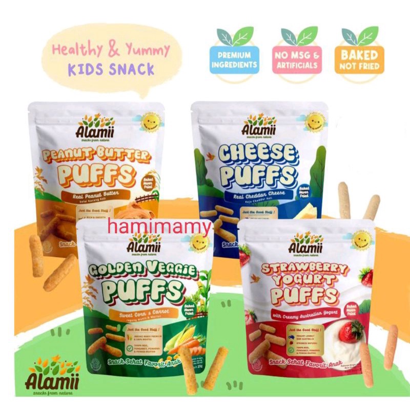 Alamii puff snack mpasi bayi cheese puffs peanut butter puffs sweet corn puffs cheesy tomato chocolate