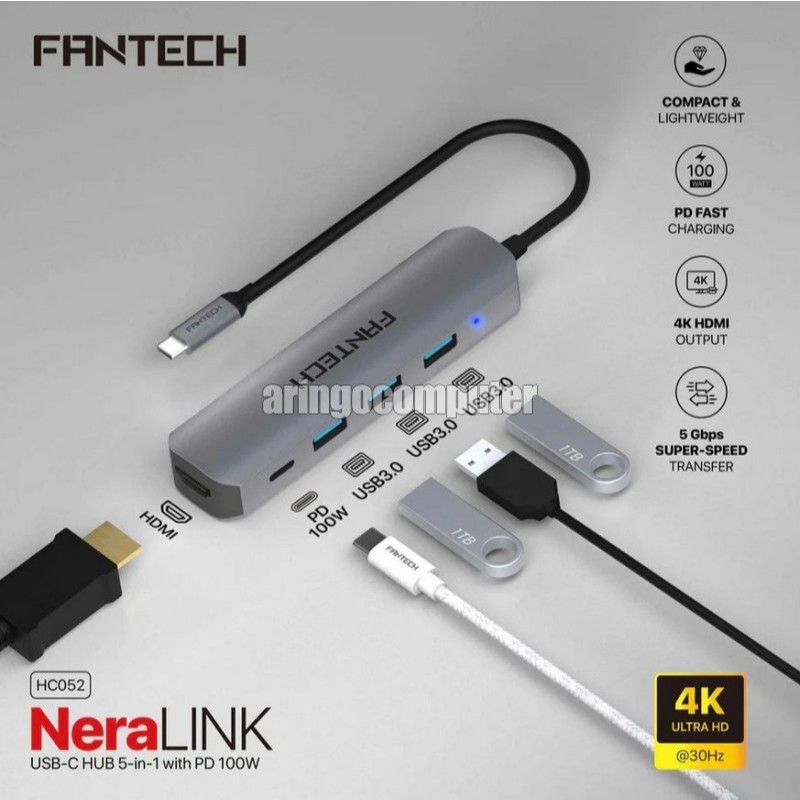 Accessories Fantech USB HUB HC052 5 IN 1 TYPE C - GREY