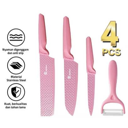 READY Pisau Dapur Diamond Set (4 in 1) 1526 - Pink Diamond Knife Set