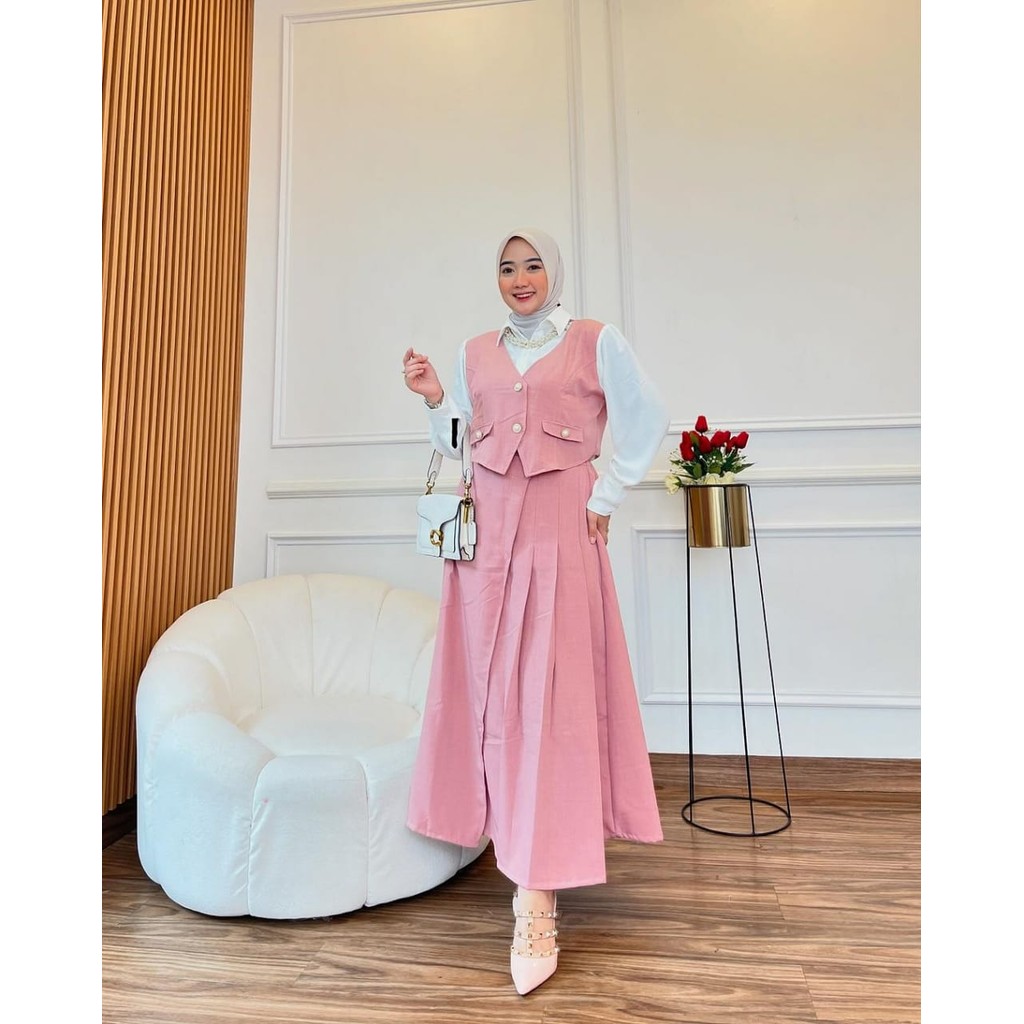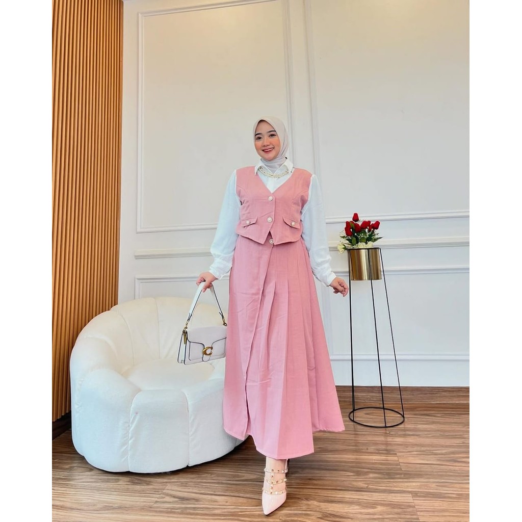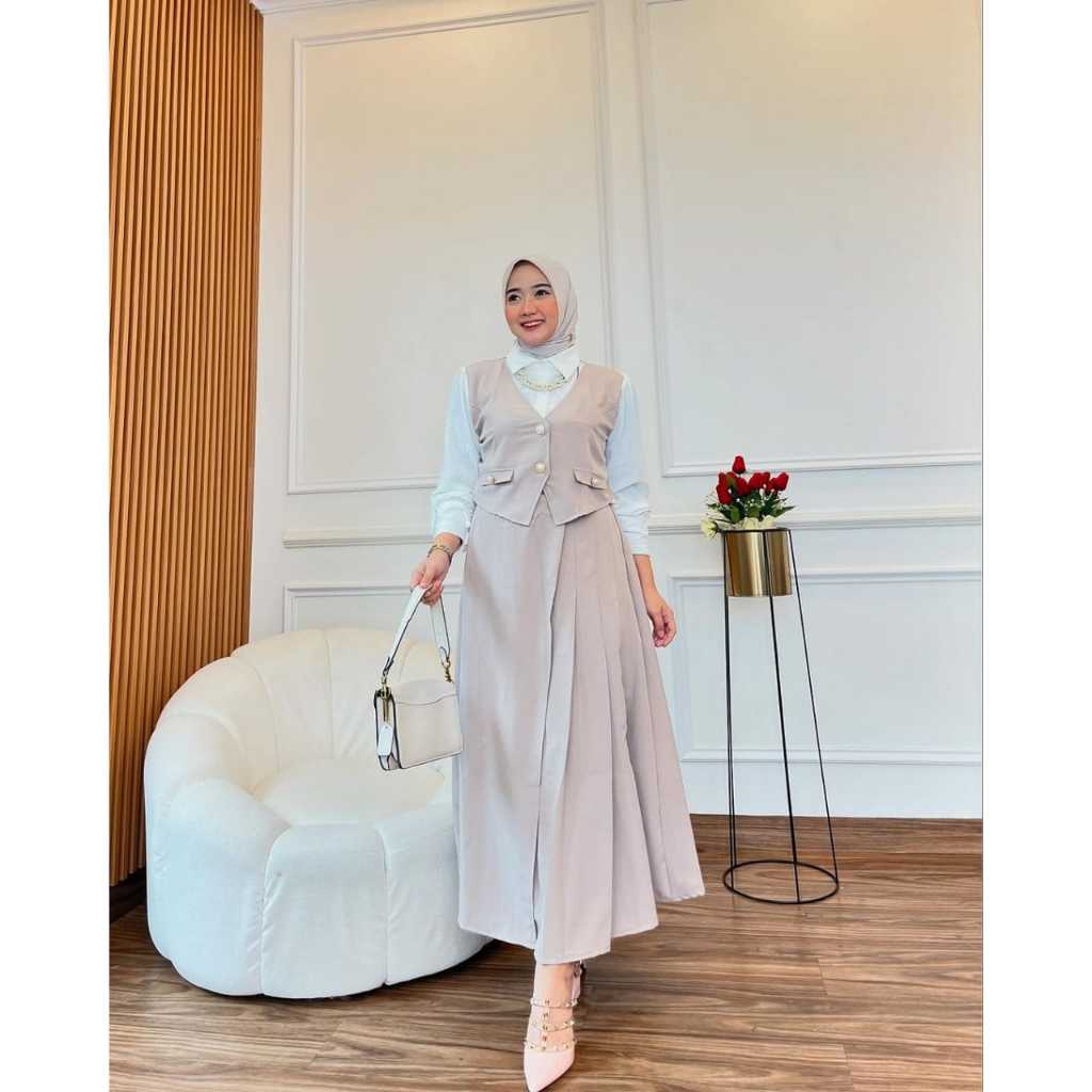 Setelan Wanita Oneset Tunic Terbaru Longset Korean Style Fashion Muslimah Malaysia Stelan Rumahan Perempuan One Set Hijab Viral 2026 Muslim Seyelan Kekinian Jumbo Baju Celana Rok Korea Cod - Avika Set Rok Setelan Wanita Muslim Matt Cringkle Mix Twill Al