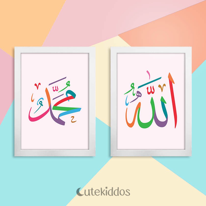 Poster Kaligrafi Hiasan Dinding Lafadz Allah Muhammad Warna Warni Cute #08