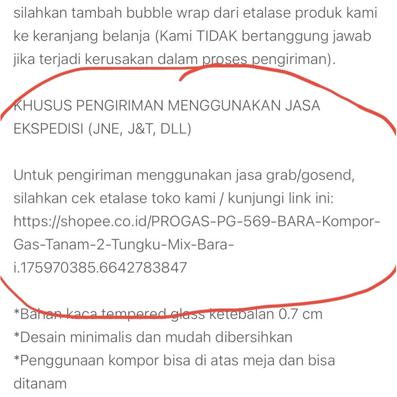 PROGAS PG-569 BARA Kompor Gas Tanam 2 Tungku Mix Bara - KHUSUS PENGIRIMAN JASA EKSPEDISI (JNE, DLL)