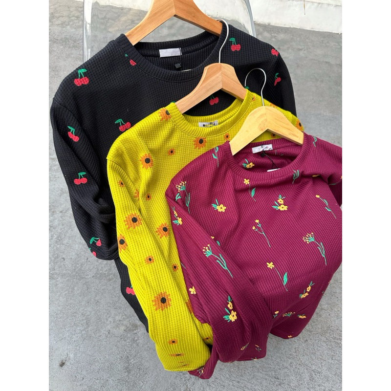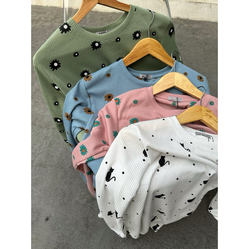 READYBASIC - BAJU KAOS LENGAN PANJANG BAHAN RAJUT PREMIUM MOTIF